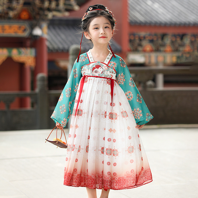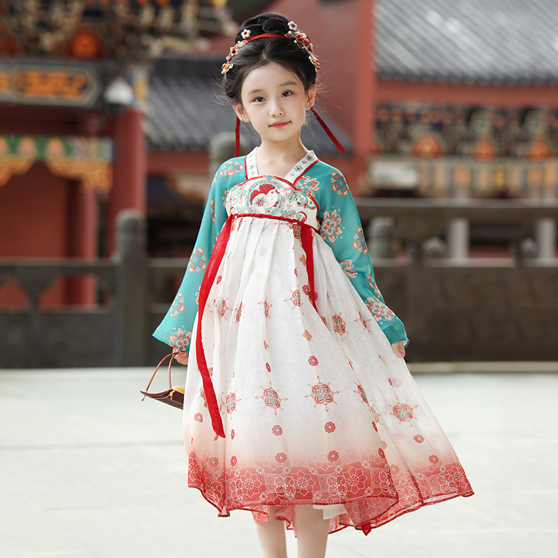 Autumn 2024 New Girls' dress Chinese Style Hanfu Ancient Style Ancient Dress Cute Embroidered Long Dress