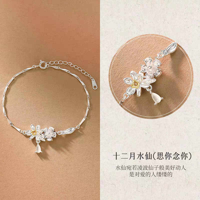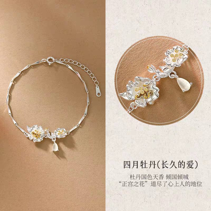 TikTok Live Broadcast New December Flower God Bracelet Antique New Chinese Style Bracelet Women's High Fashion Valentine's Day Gift