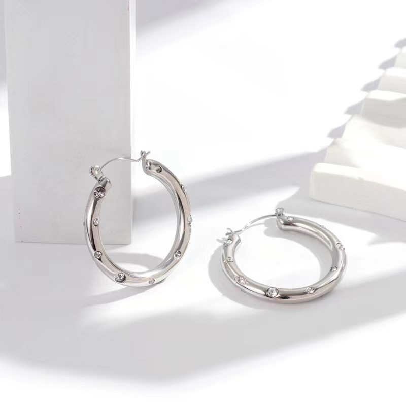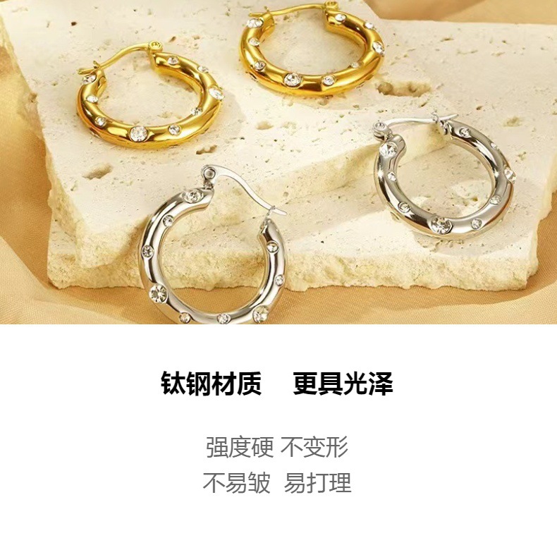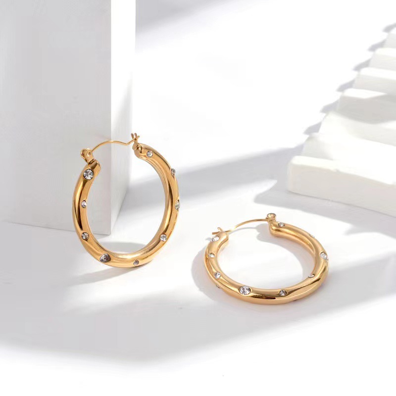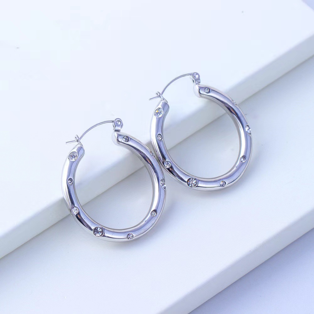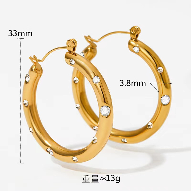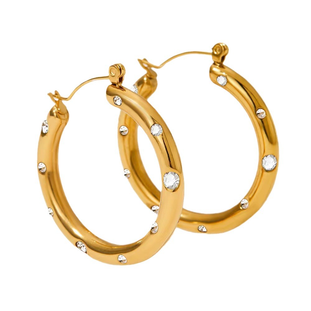 Huayue European and American Retro Popular 18K Non-Fading U-Shaped Zircon Earrings for Women, High-End, Simple, Fashionable and Versatile Earrings