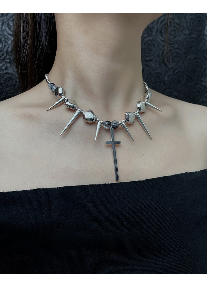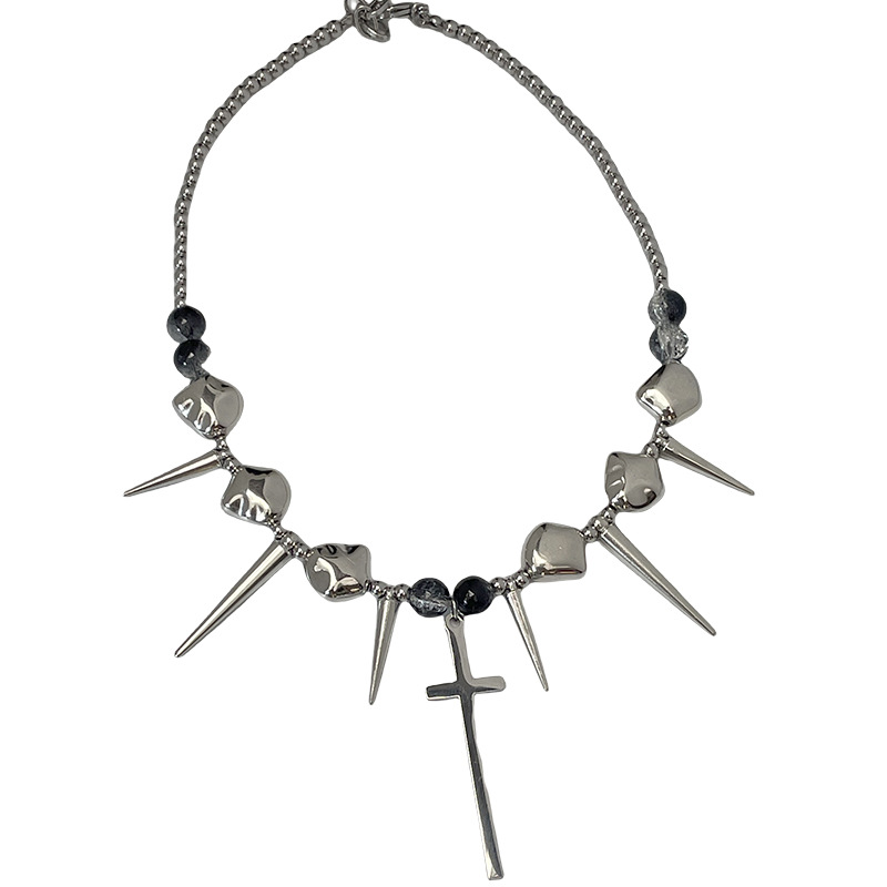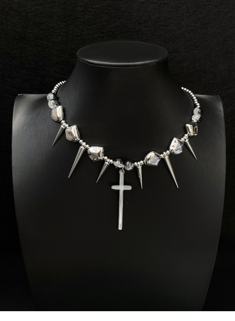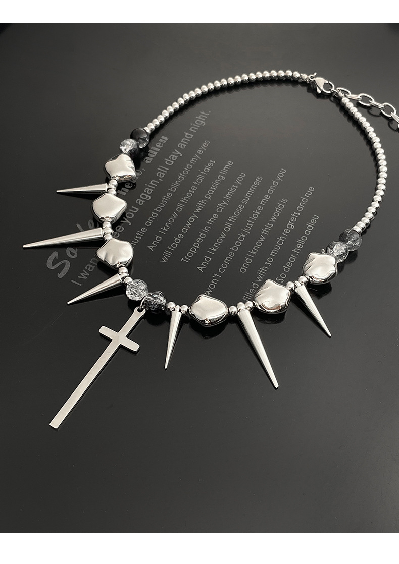 Cross Rivets Exaggerated Punk Necklace for Men and Women Y2K Irregular Subculture Niche Chain Hip Hop Necklace Chain
