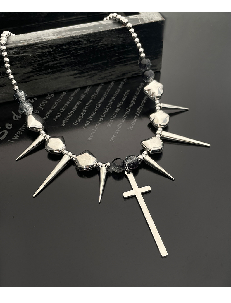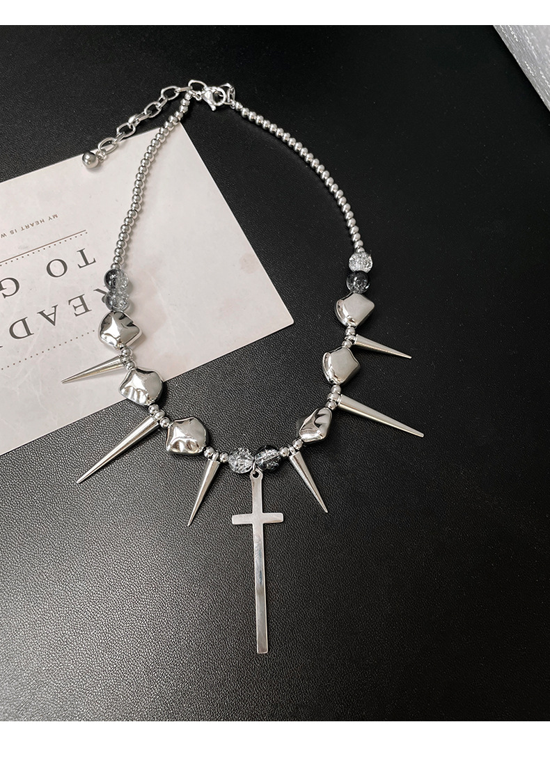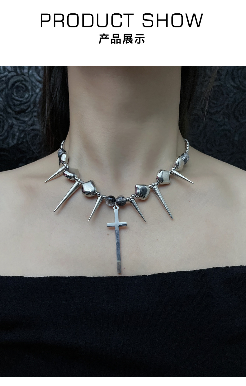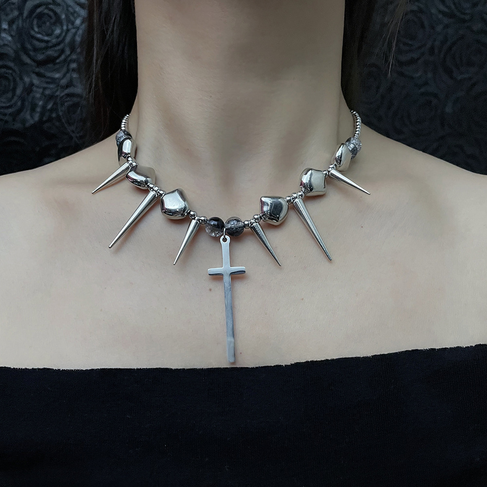 Cross Rivets Exaggerated Punk Necklace for Men and Women Y2K Irregular Subculture Niche Chain Hip Hop Necklace Chain