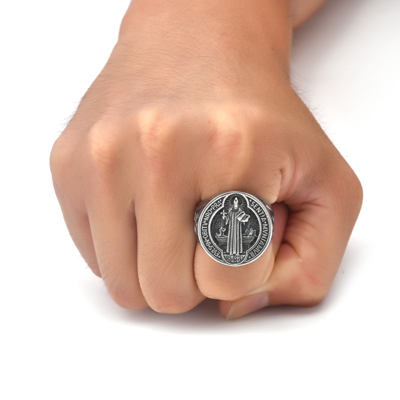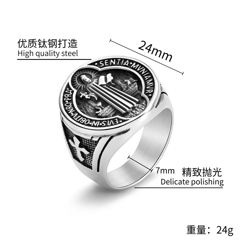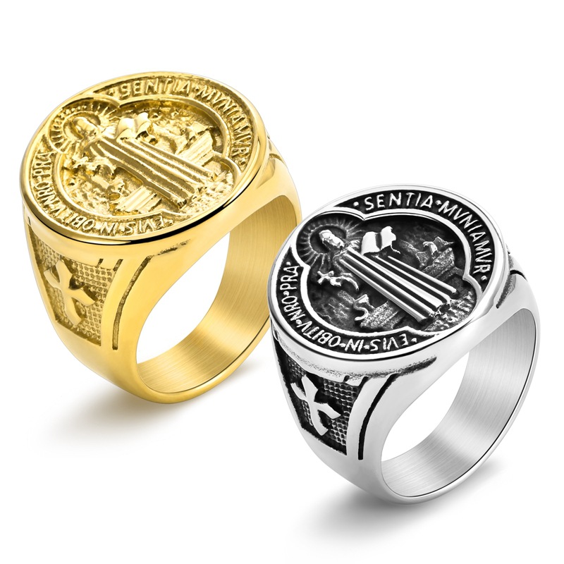 Ring: Amazon supply hip-hop jewelry titanium steel saint benedict exotic saint brand cross stainless steel gold-plated men's ring