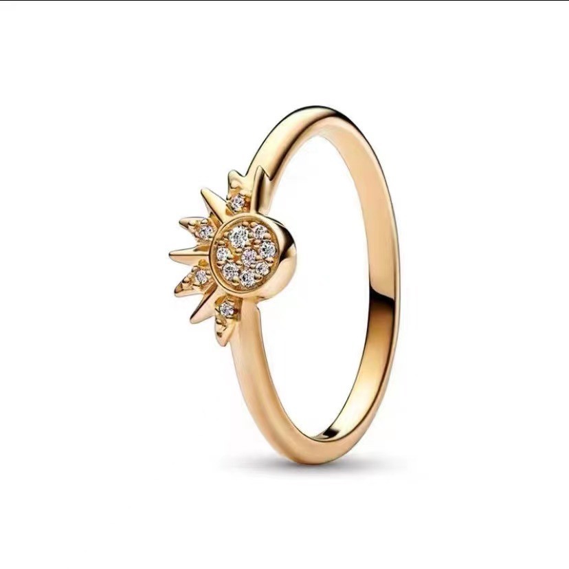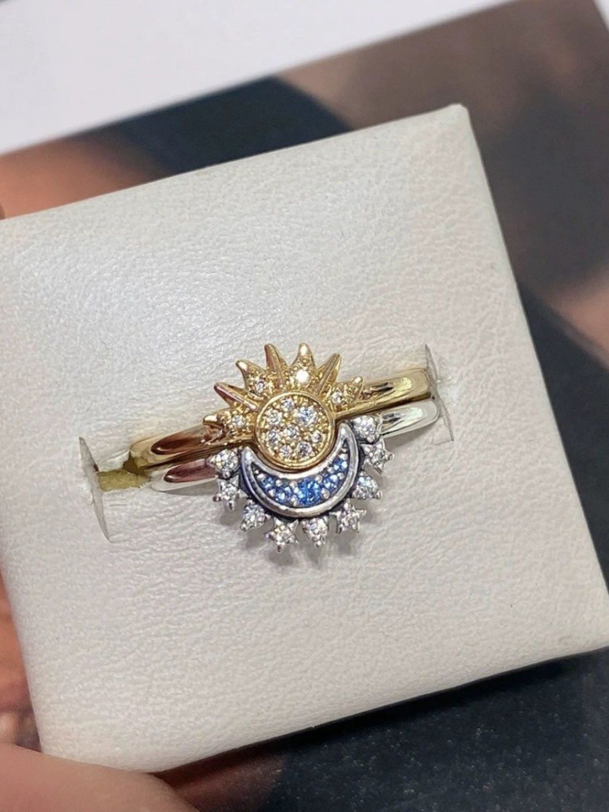 Summer Sky Blue Sparkling Moon and Sun Ring Glowing in the Dark Firefly Zircon Ring
