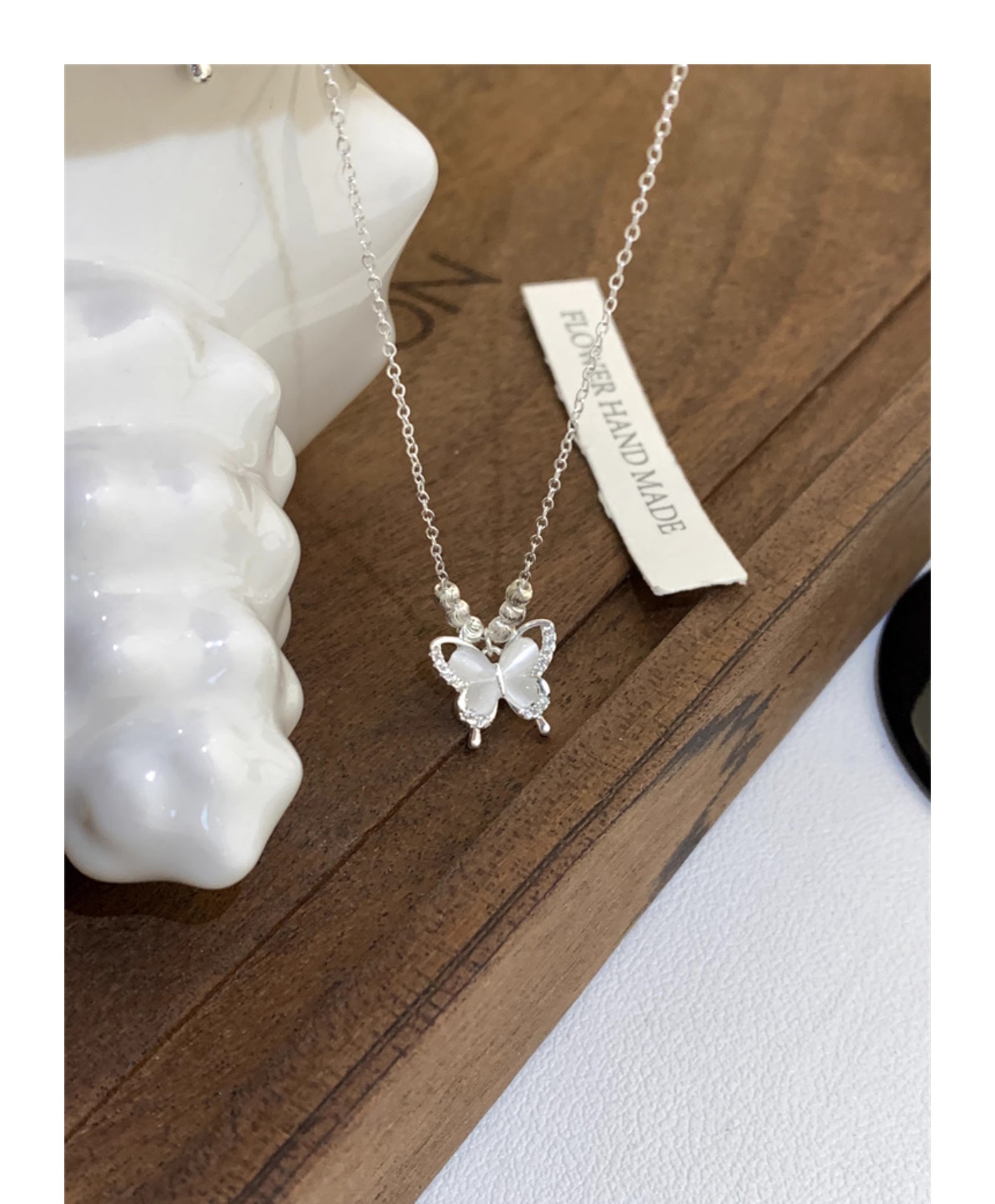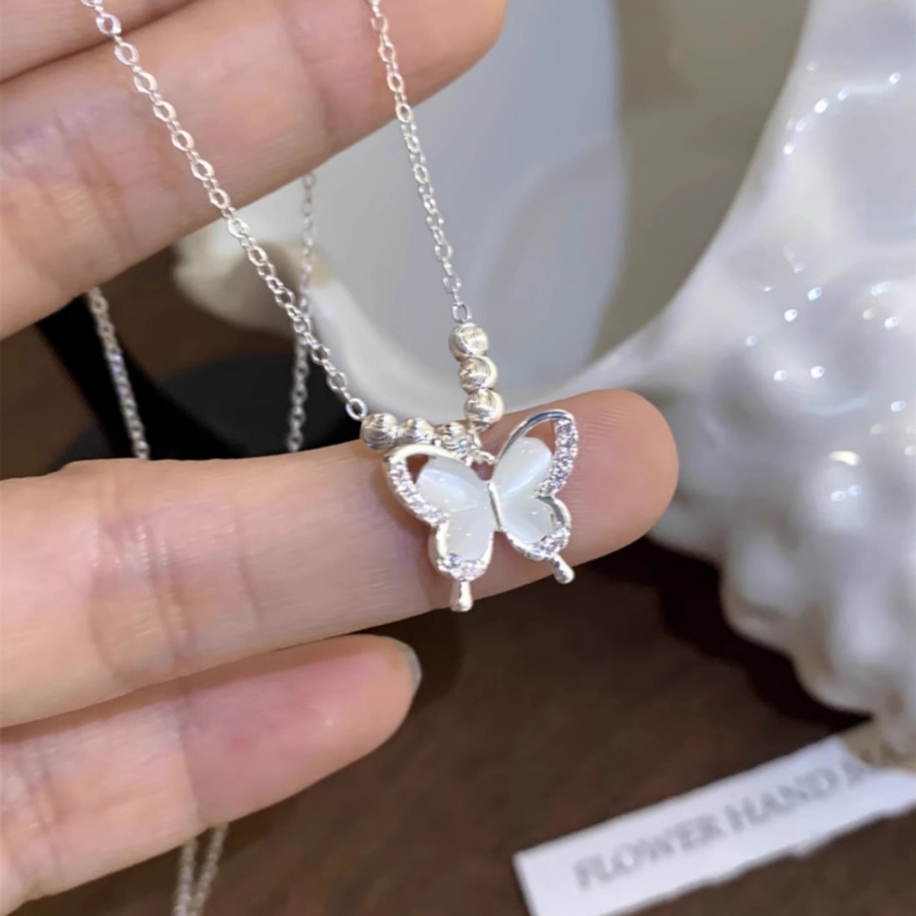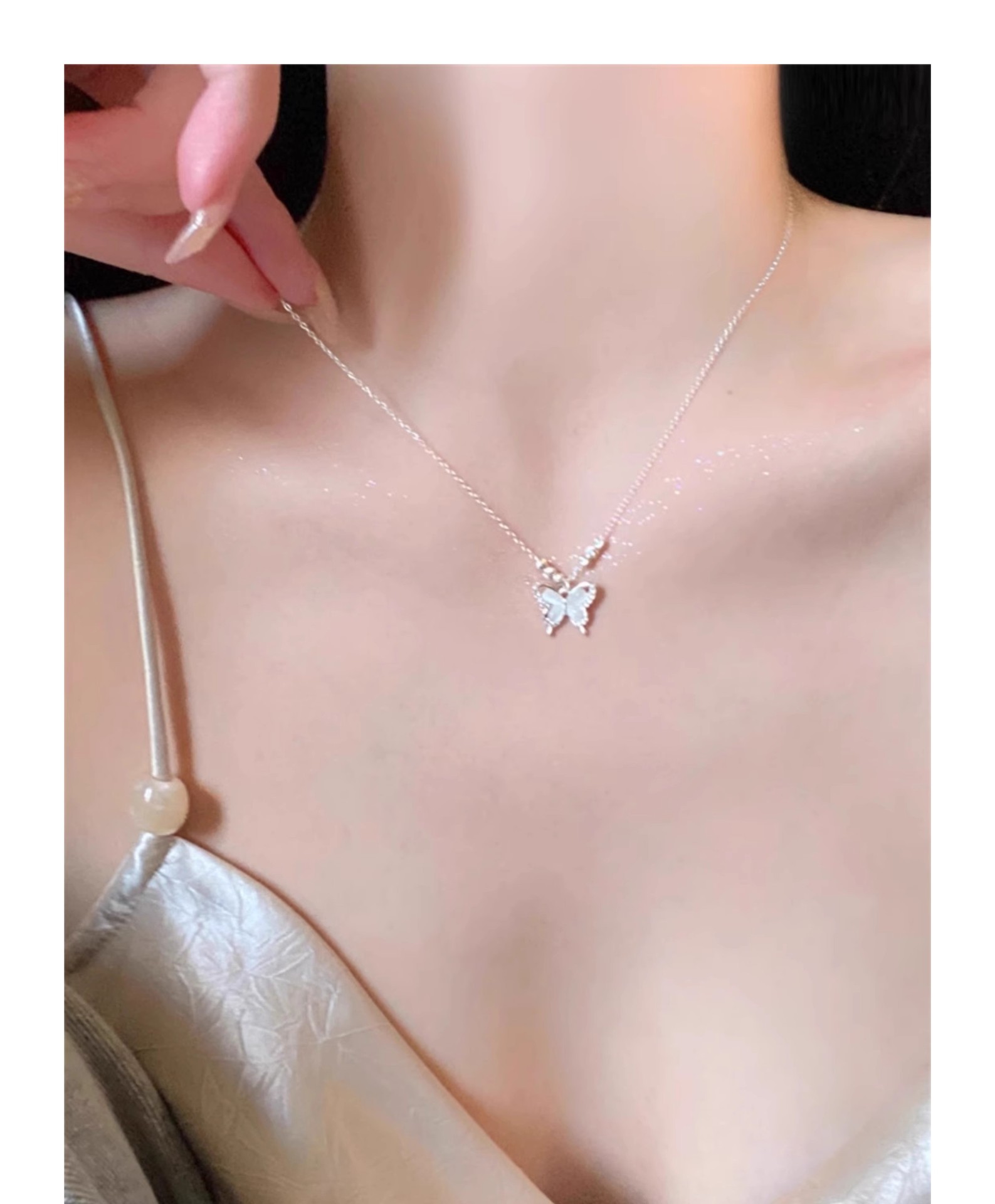 New Chinese Opal Butterfly Necklace Women's 2024 New Entry Luxury Niche Design Cool Choker Clavicle Chain