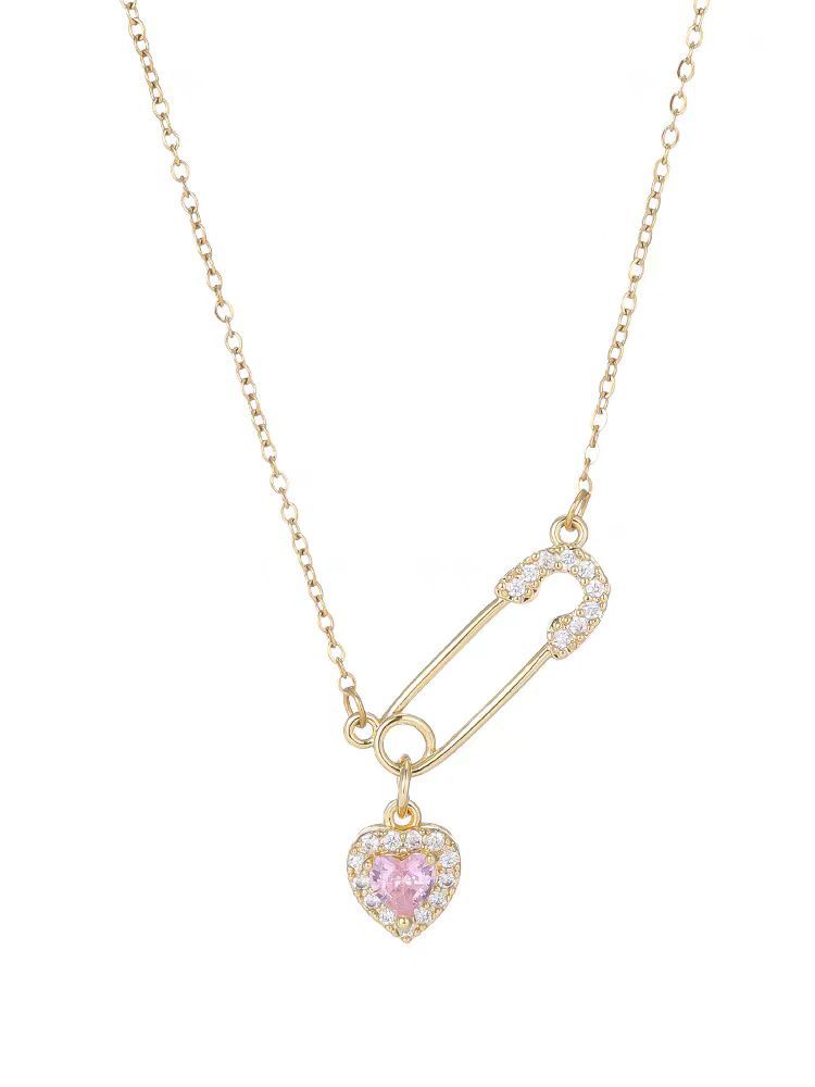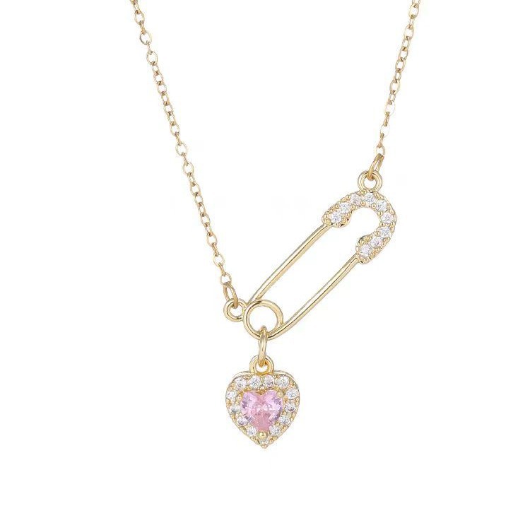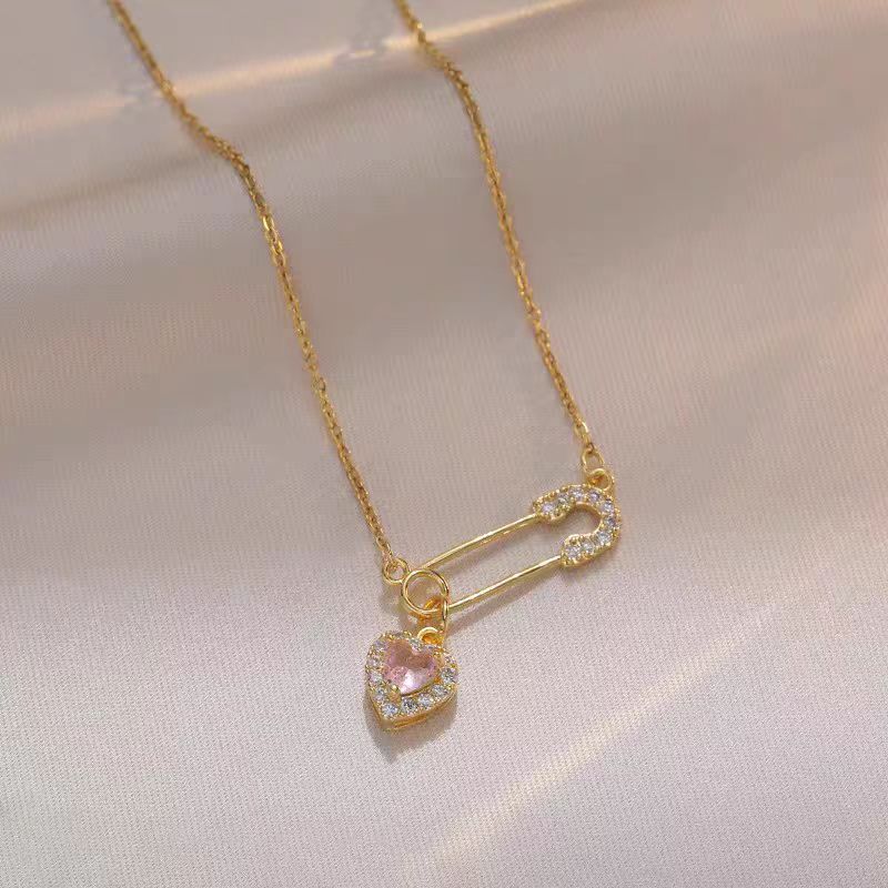 Love Diamond Pin Necklace Women's Sweet Cool Style Niche High-grade Sense Sweet Super Flash Clavicle Chain Platinum Water Drops