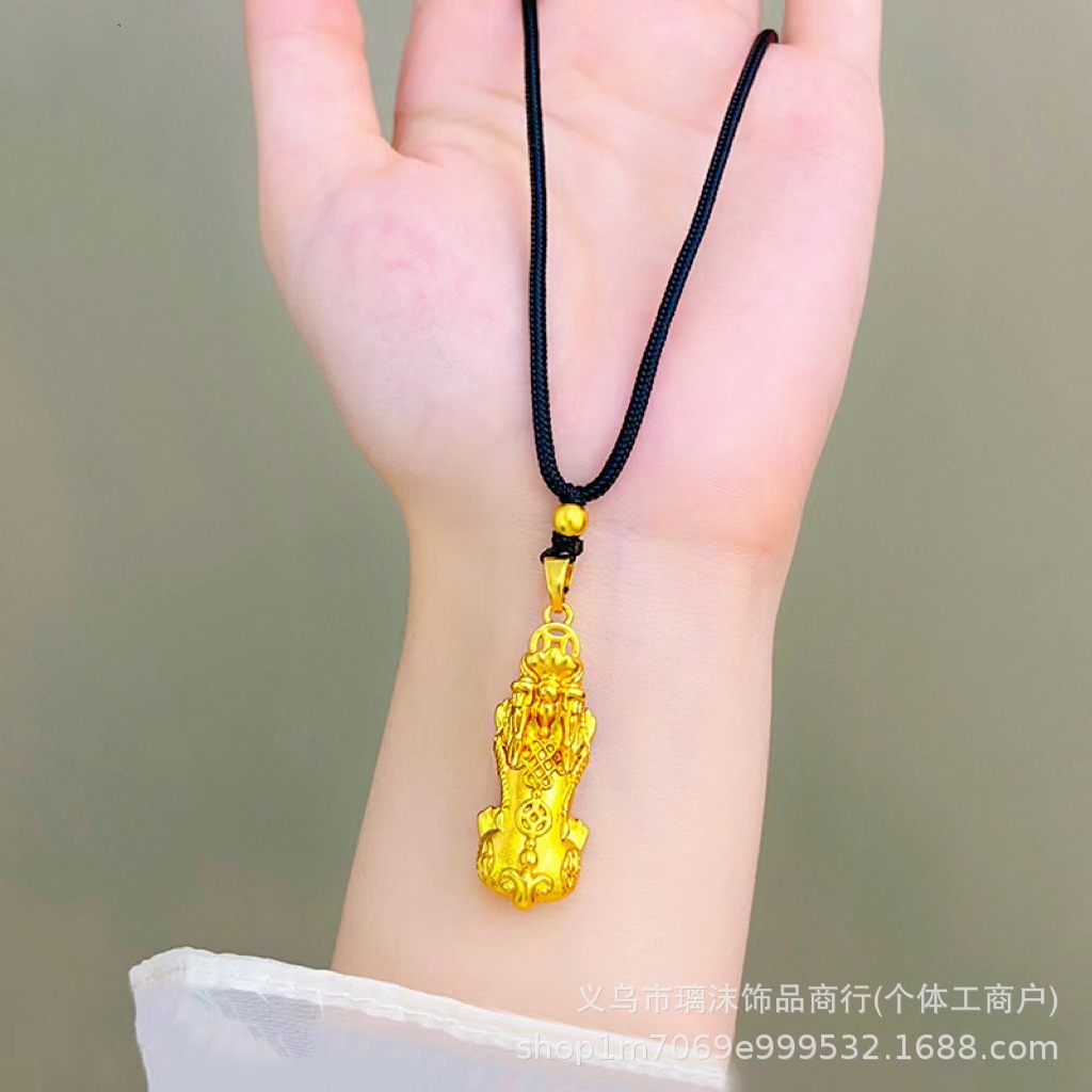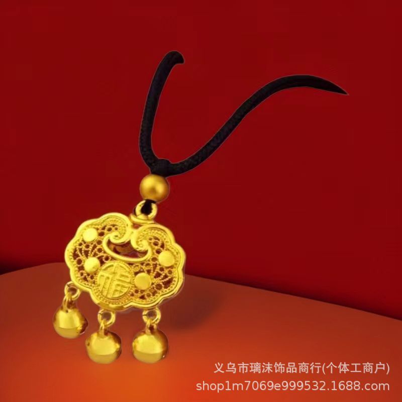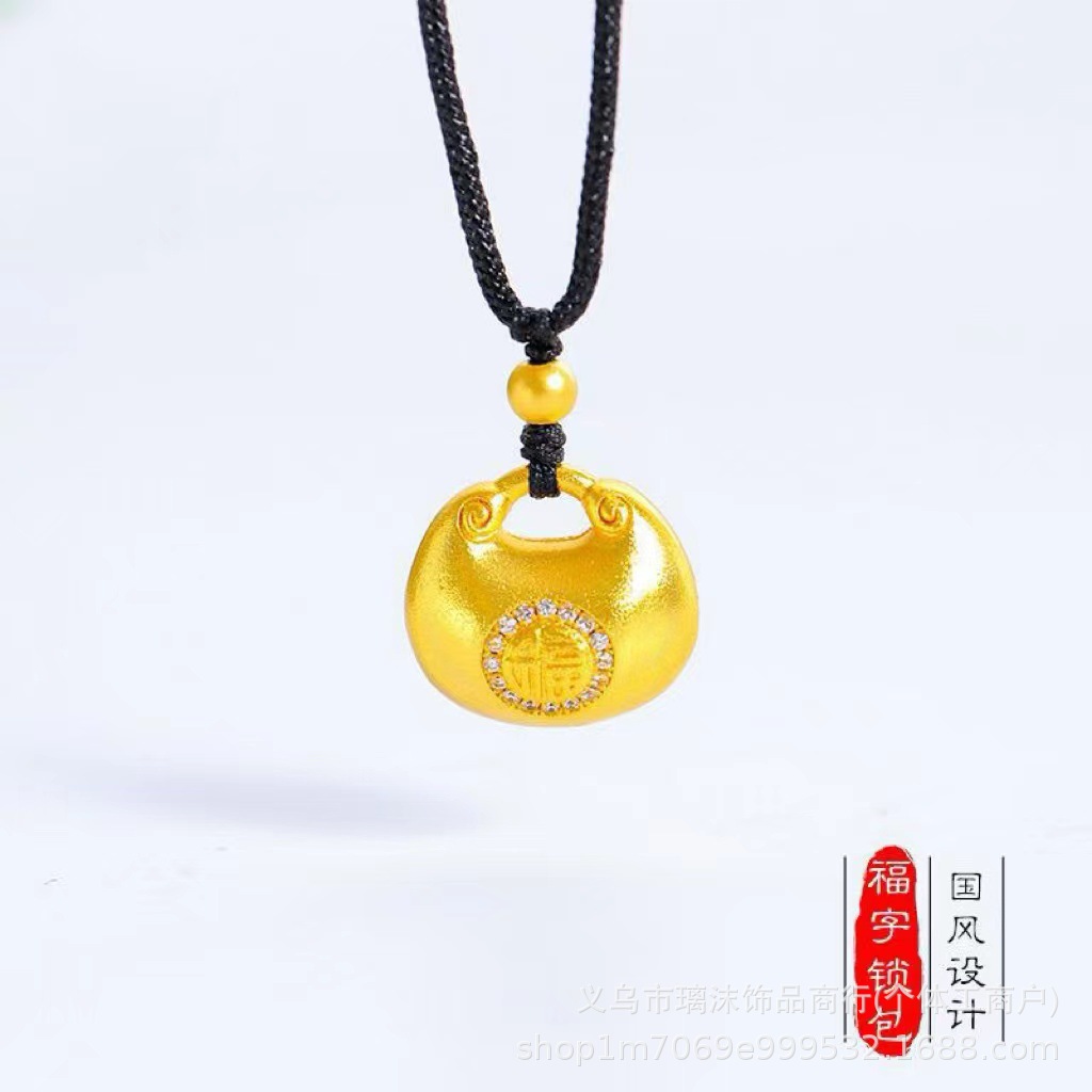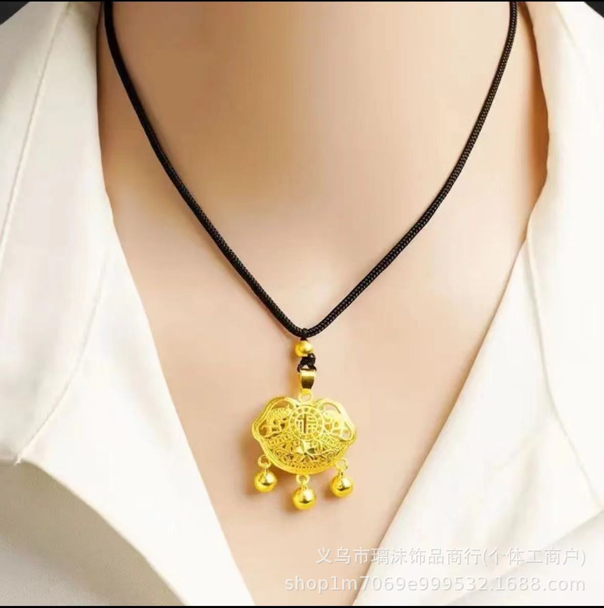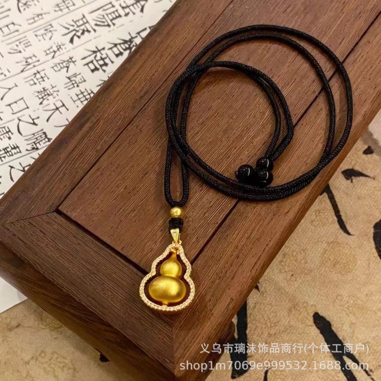 New Chinese gourd peace lock black rope necklace for a long time does not fade sand gold brass pendant gold sweater chain women wholesale