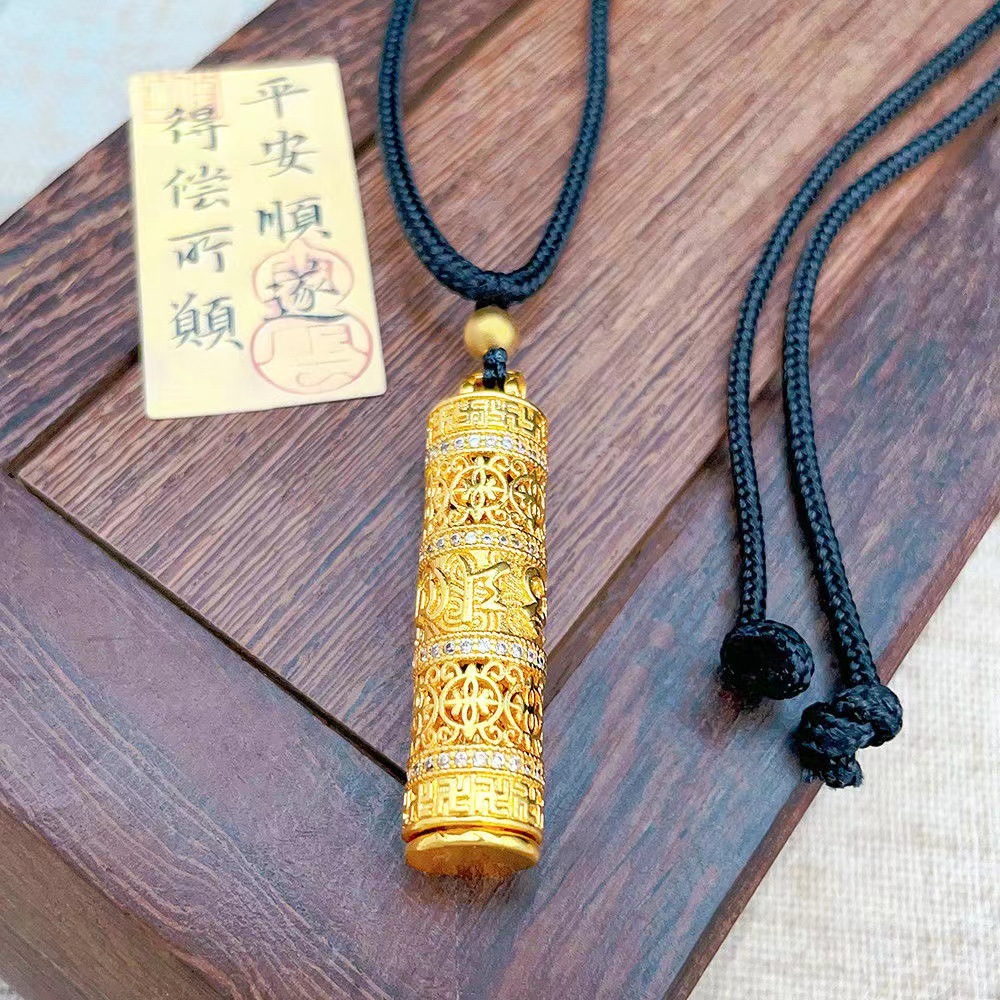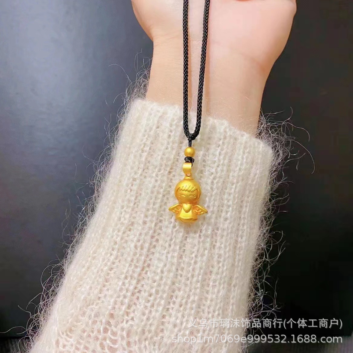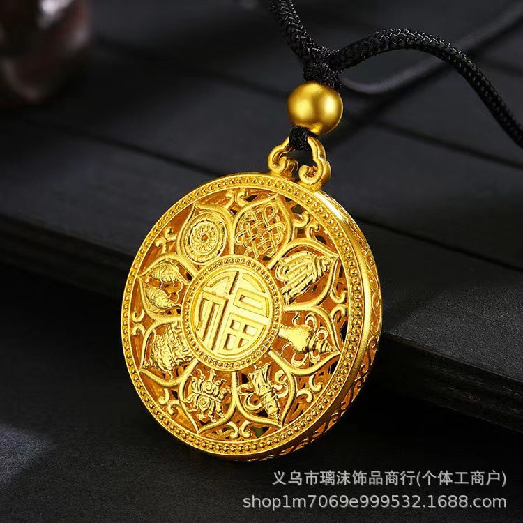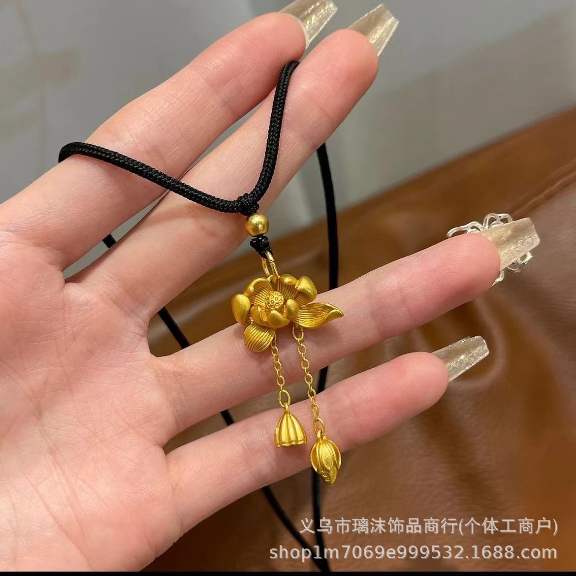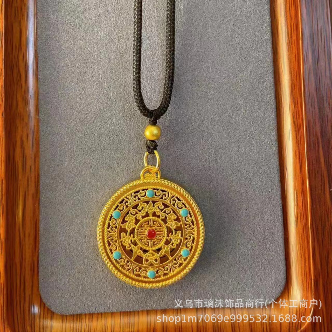 New Chinese gourd peace lock black rope necklace for a long time does not fade sand gold brass pendant gold sweater chain women wholesale