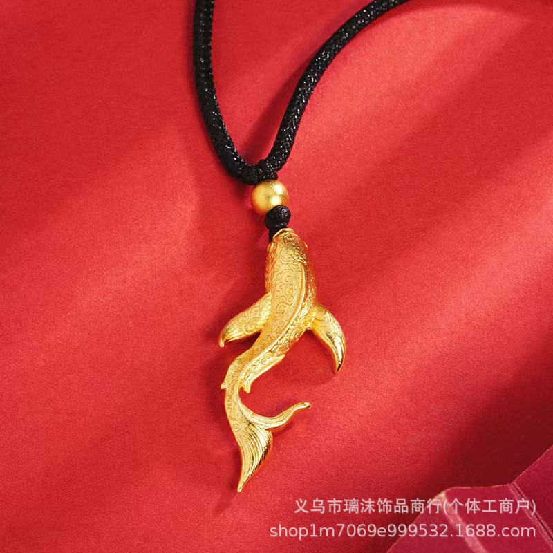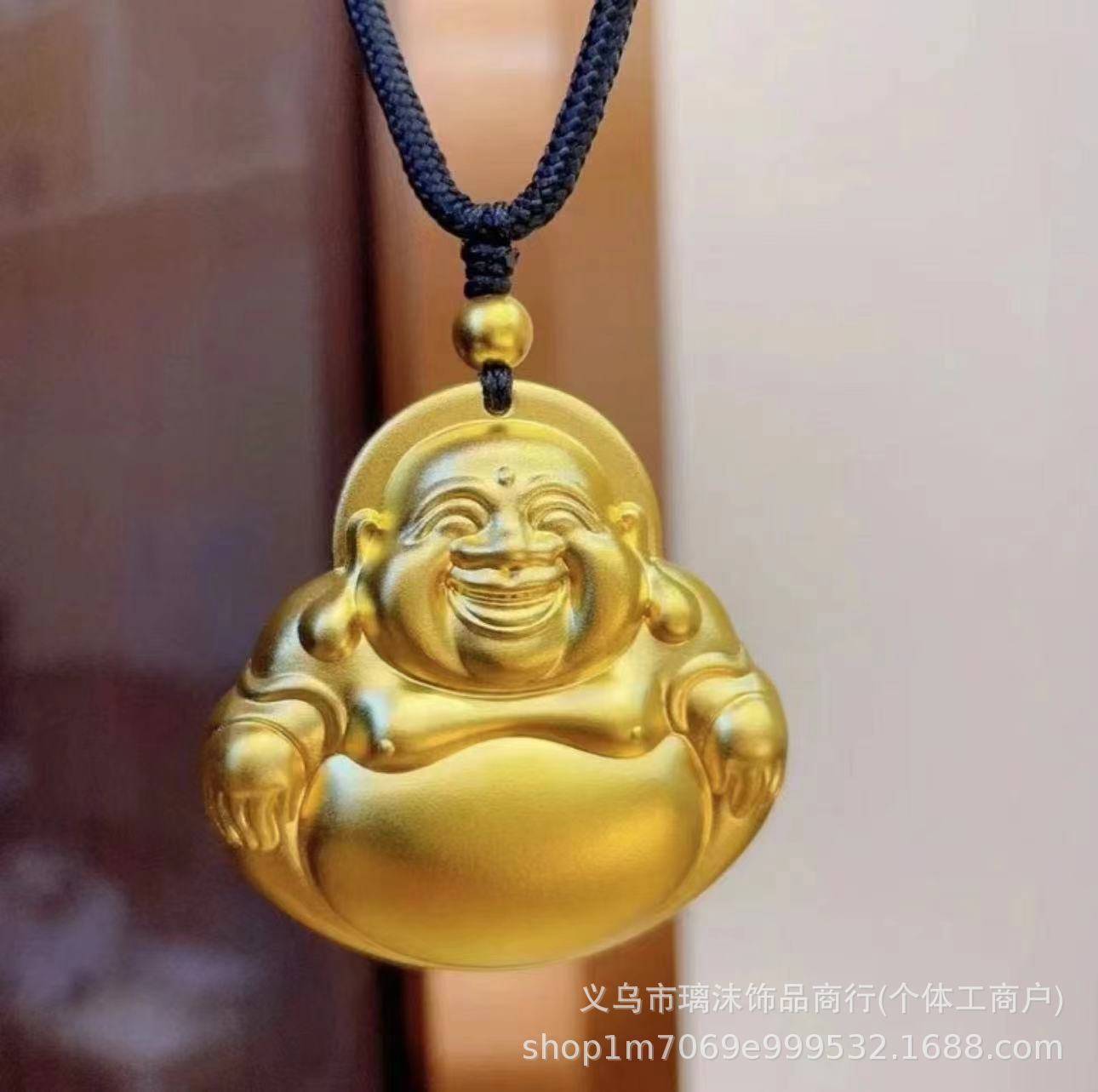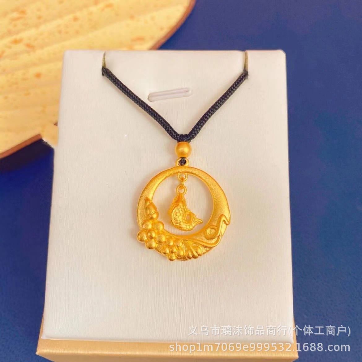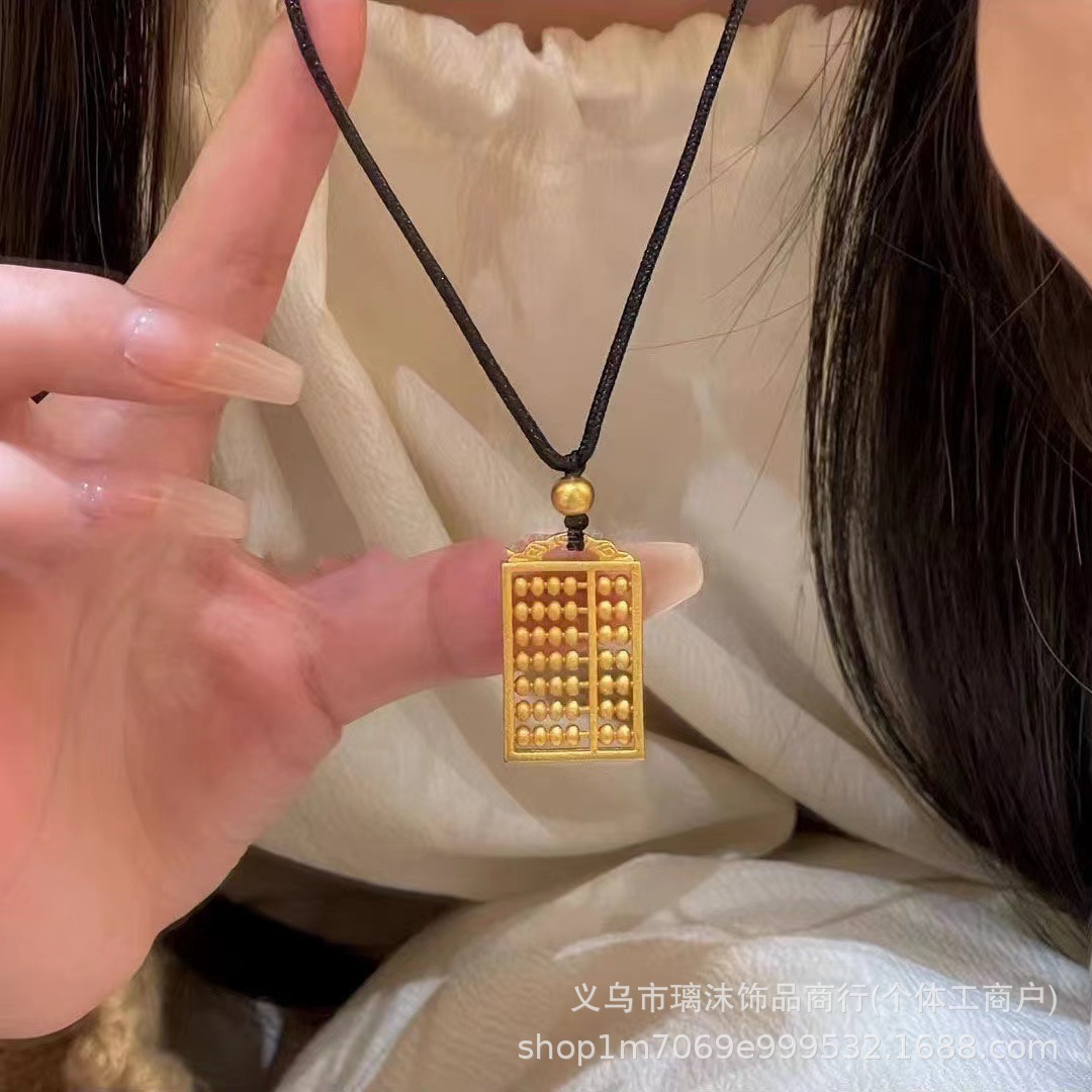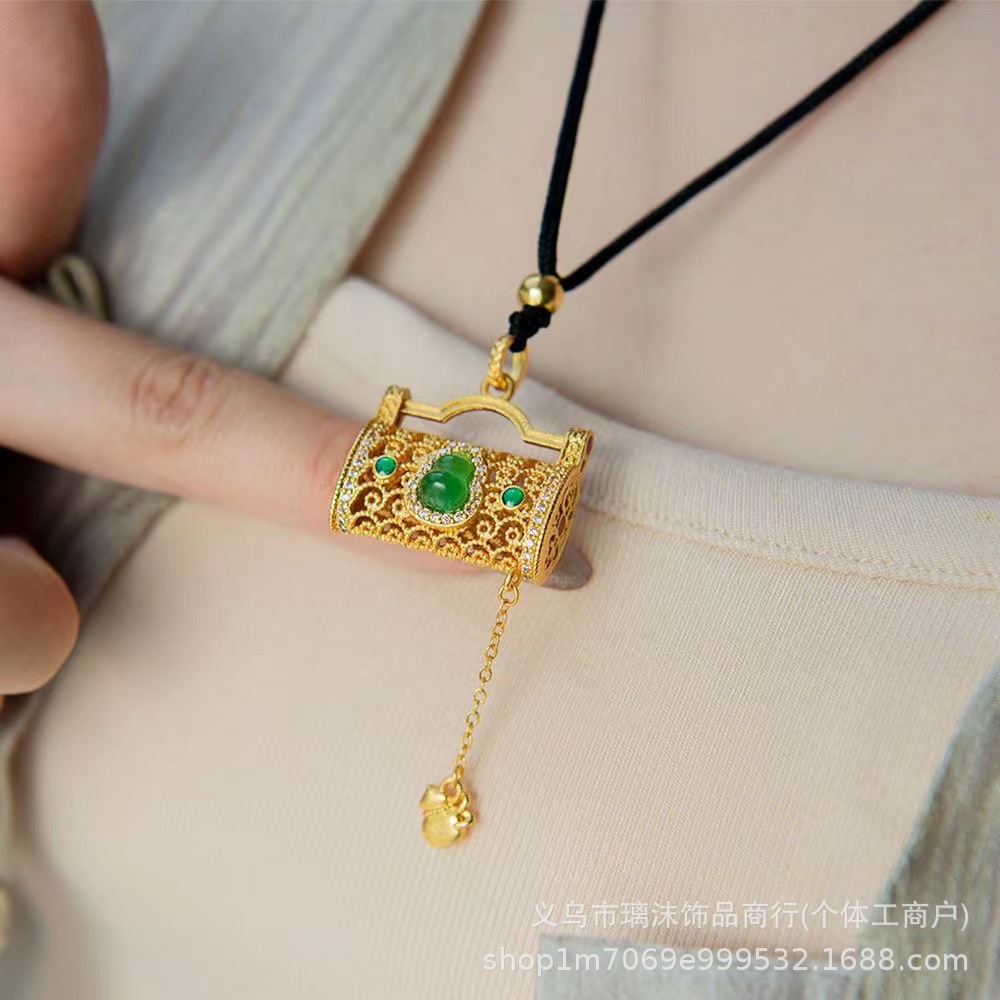 New Chinese gourd peace lock black rope necklace for a long time does not fade sand gold brass pendant gold sweater chain women wholesale