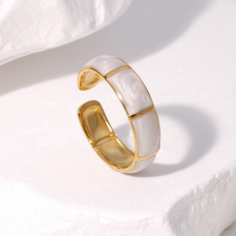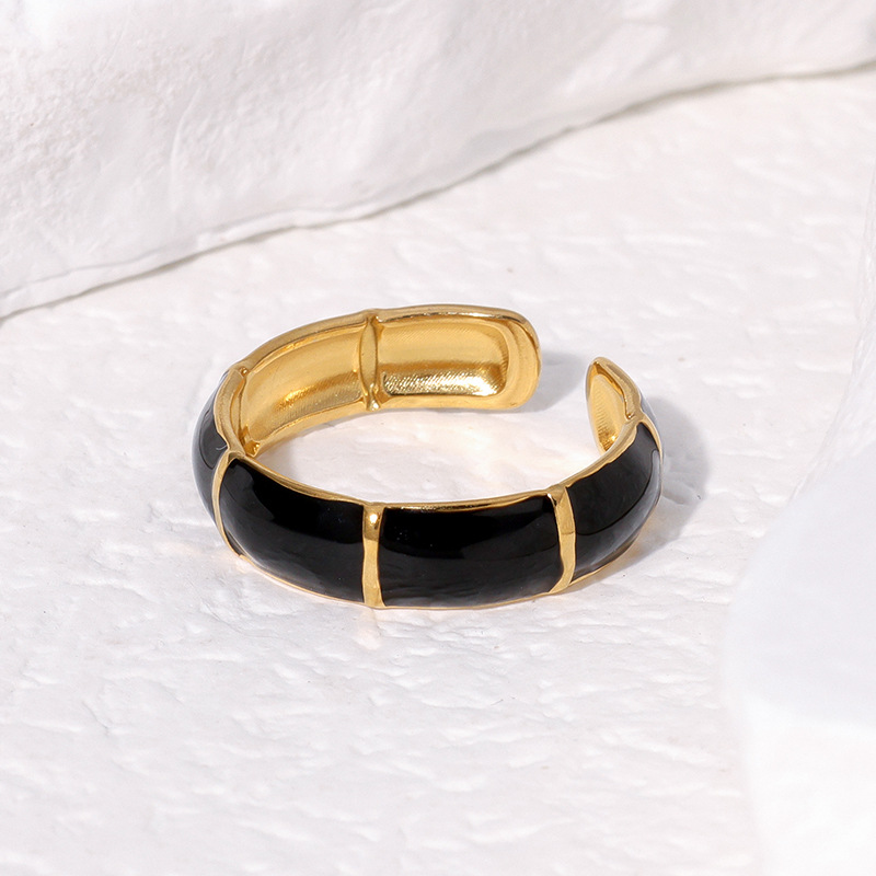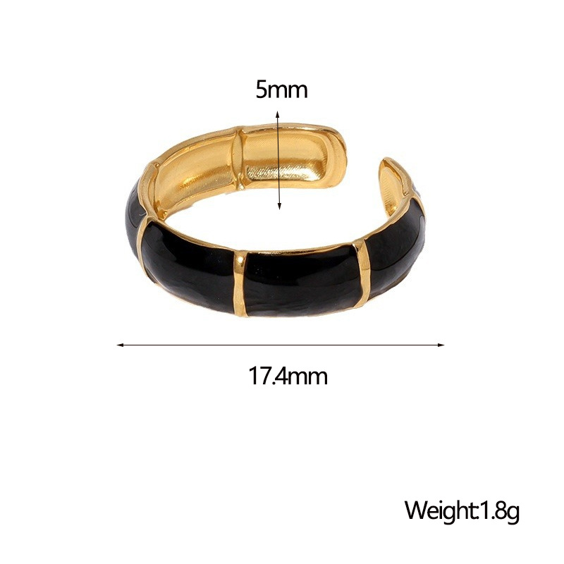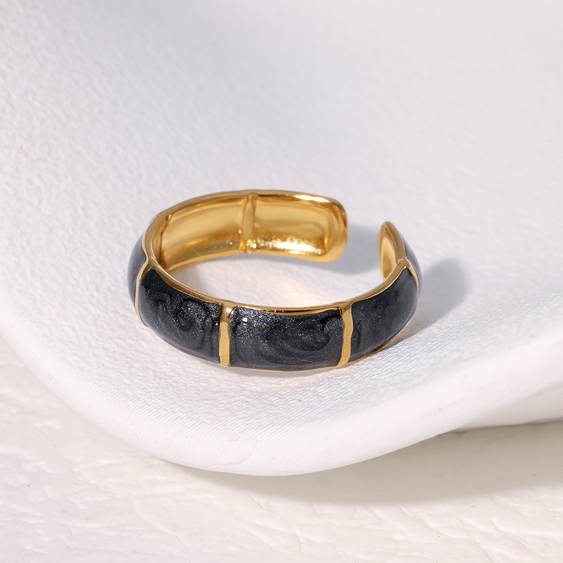 Fashion simple design drop oil slub index finger open ring temperament high sense does not fade gold plated stainless steel ring
