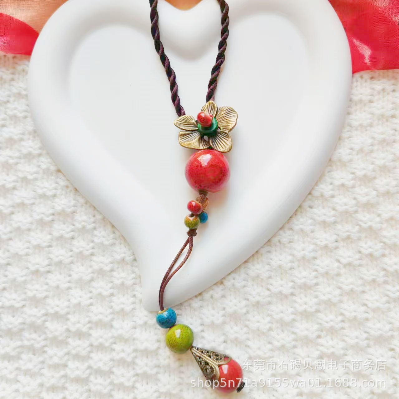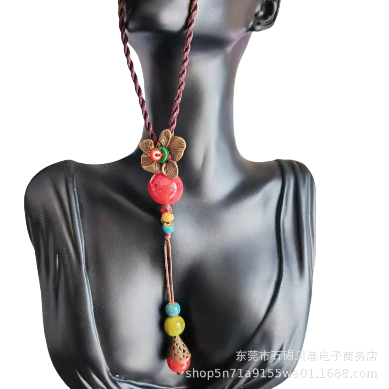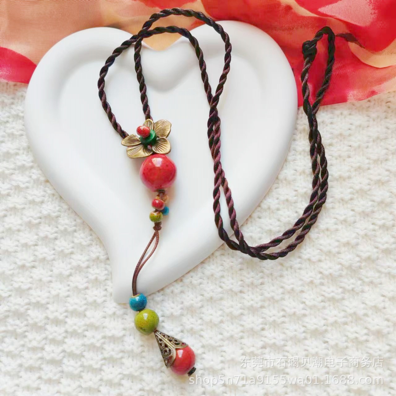 Vintage Fashion Ethnic Ceramic Necklace Mori Beautiful Fruit Pendant Girly Elegant Long Sweater Clavicle Chain