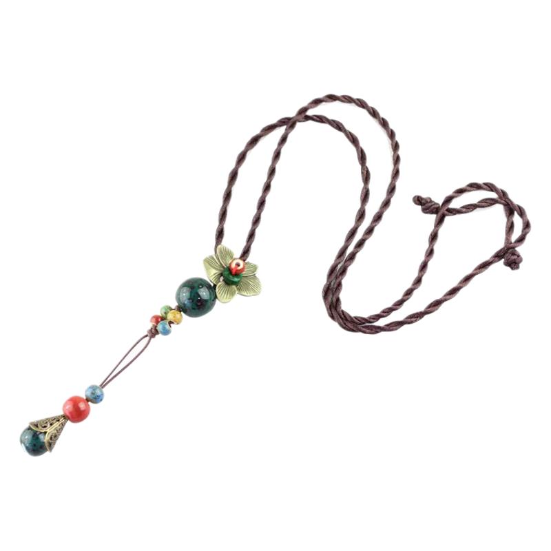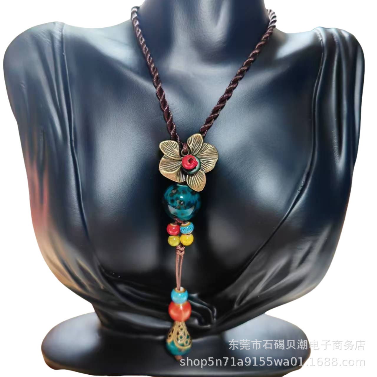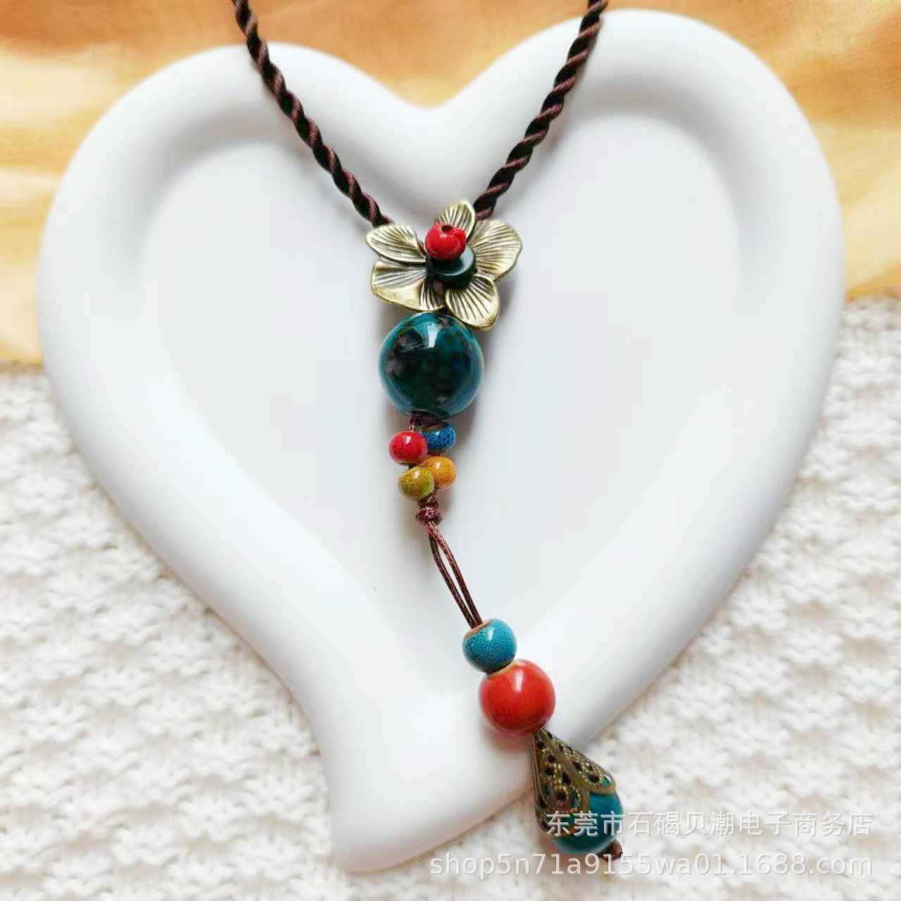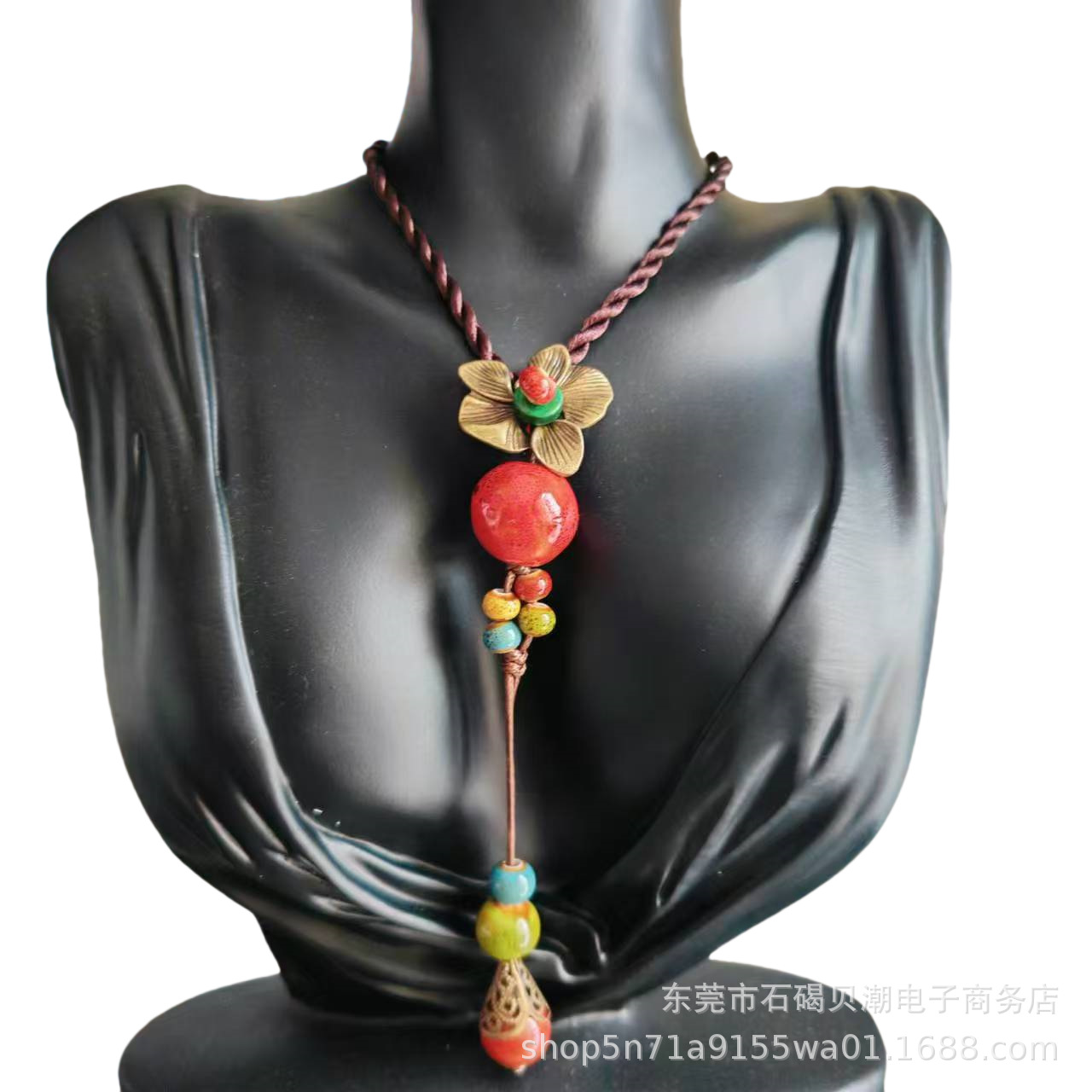 Vintage Fashion Ethnic Ceramic Necklace Mori Beautiful Fruit Pendant Girly Elegant Long Sweater Clavicle Chain
