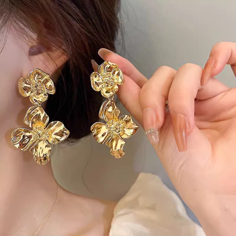 Color: Metal cold style exaggerated earrings-a1631 gold