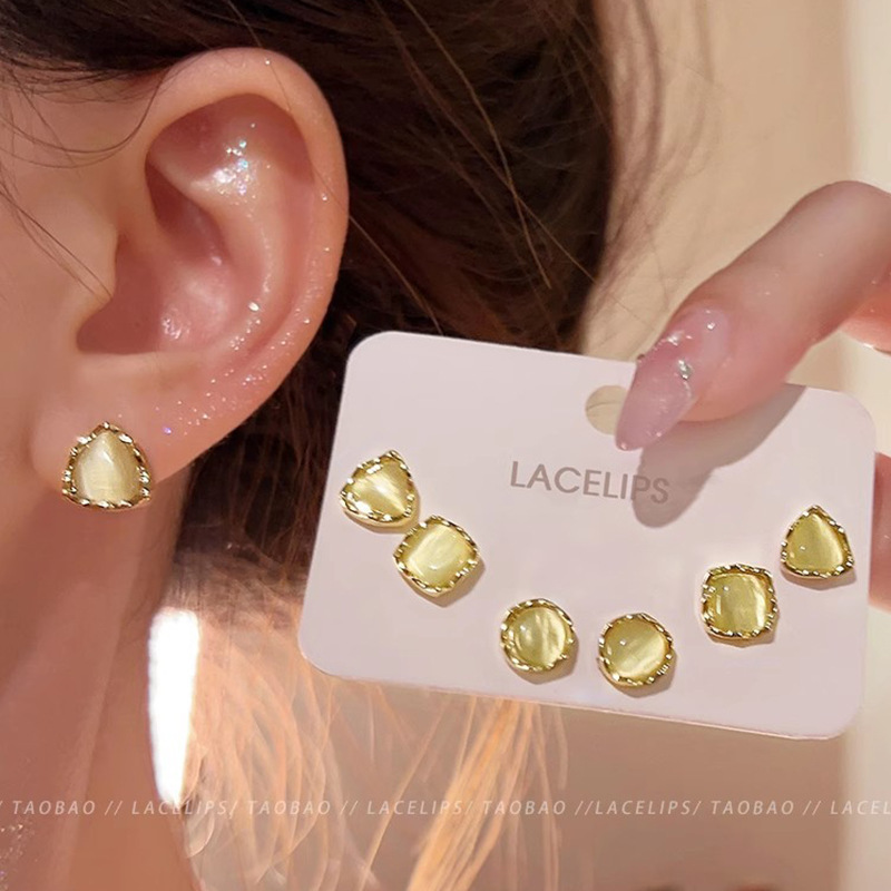 Color: Cat's eye stud earrings set of six-a1853 gold