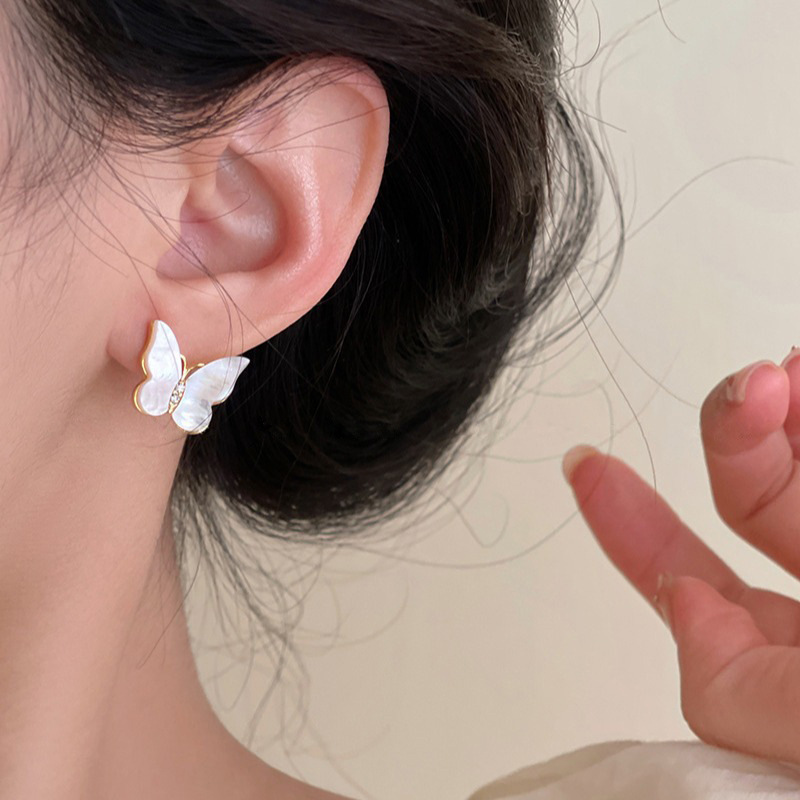 Color: Cool butterfly pearl stud earrings-e6102 silver