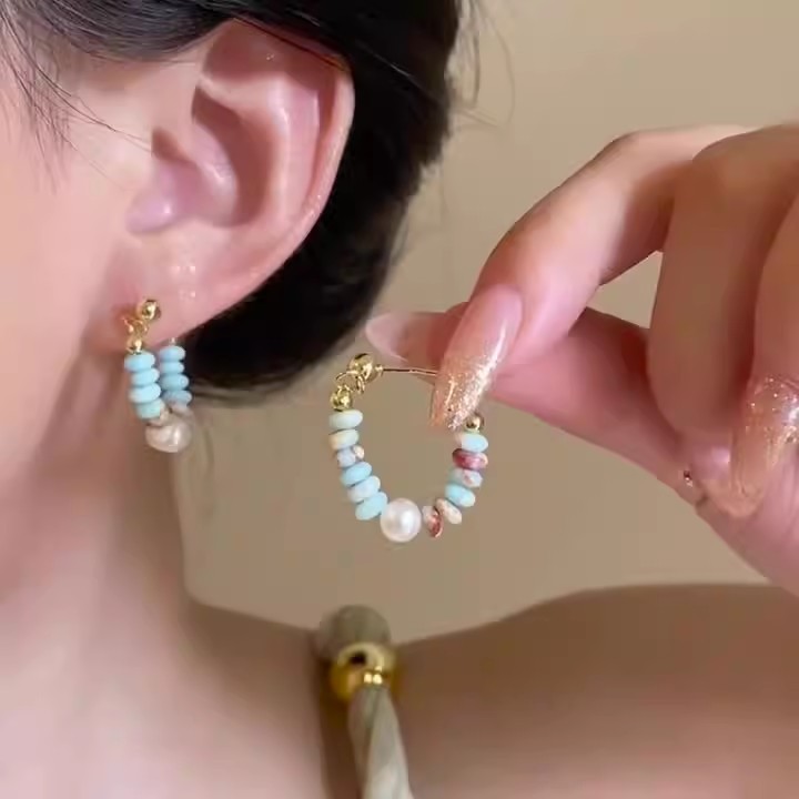 Color: Pearl imitation natural stone stitching earrings-a1759 gold