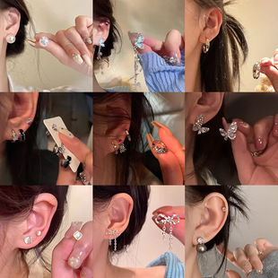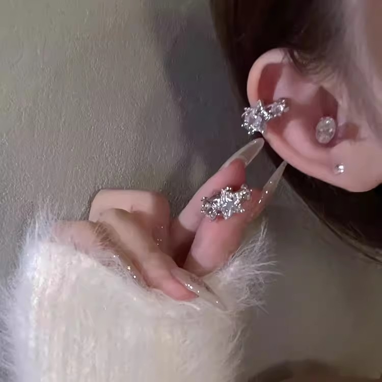Color: Non-pierced diamond-encrusted pearl tassel ear cuff-a1704 silver