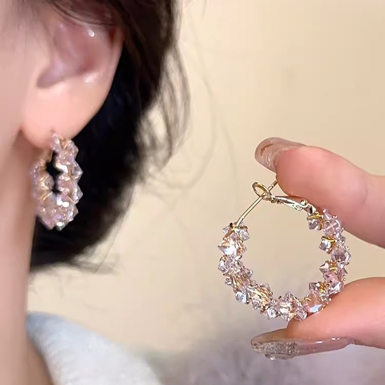Color: Sparkling diamond hoop earrings-a1948 silver