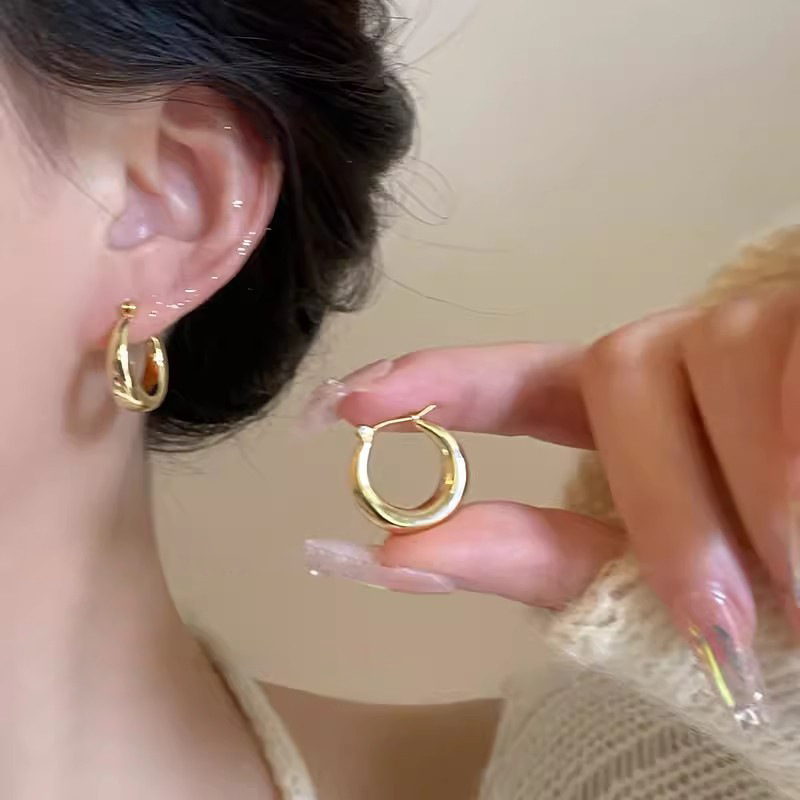 Color: Cold style silver plain hoop earrings-a1693 silver