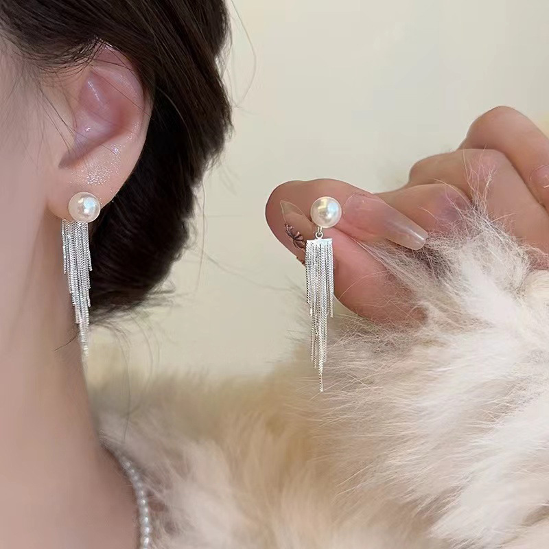 Color: Temperament tassel pearl stud earrings-a1364 silver