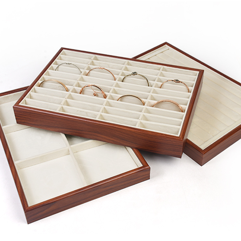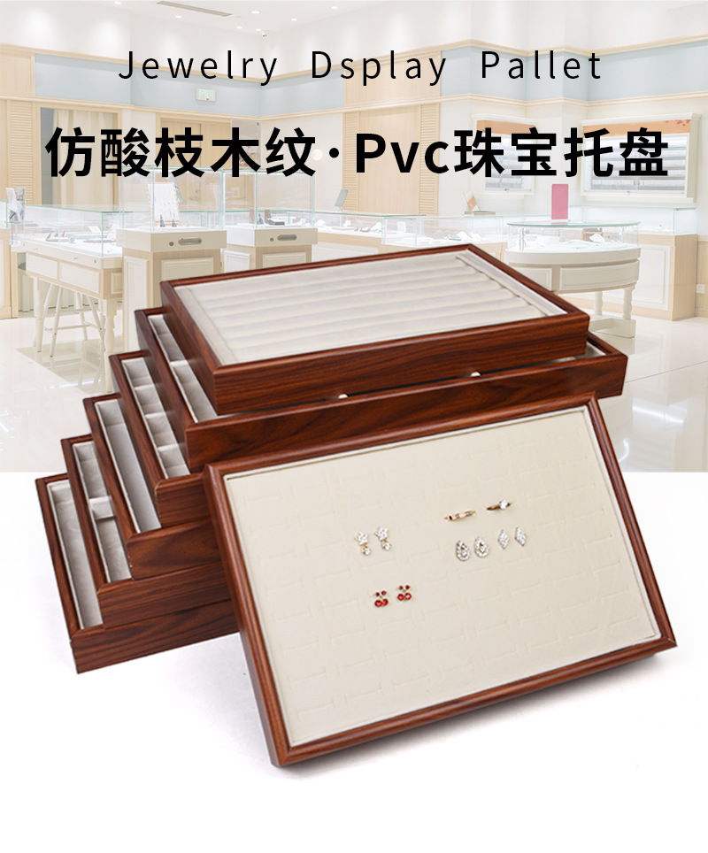 New Imitation Sour Branch Wood Grain PVC Inner Velvet Display Plate Ring Necklace See Pallet Counter Jewelry Tray