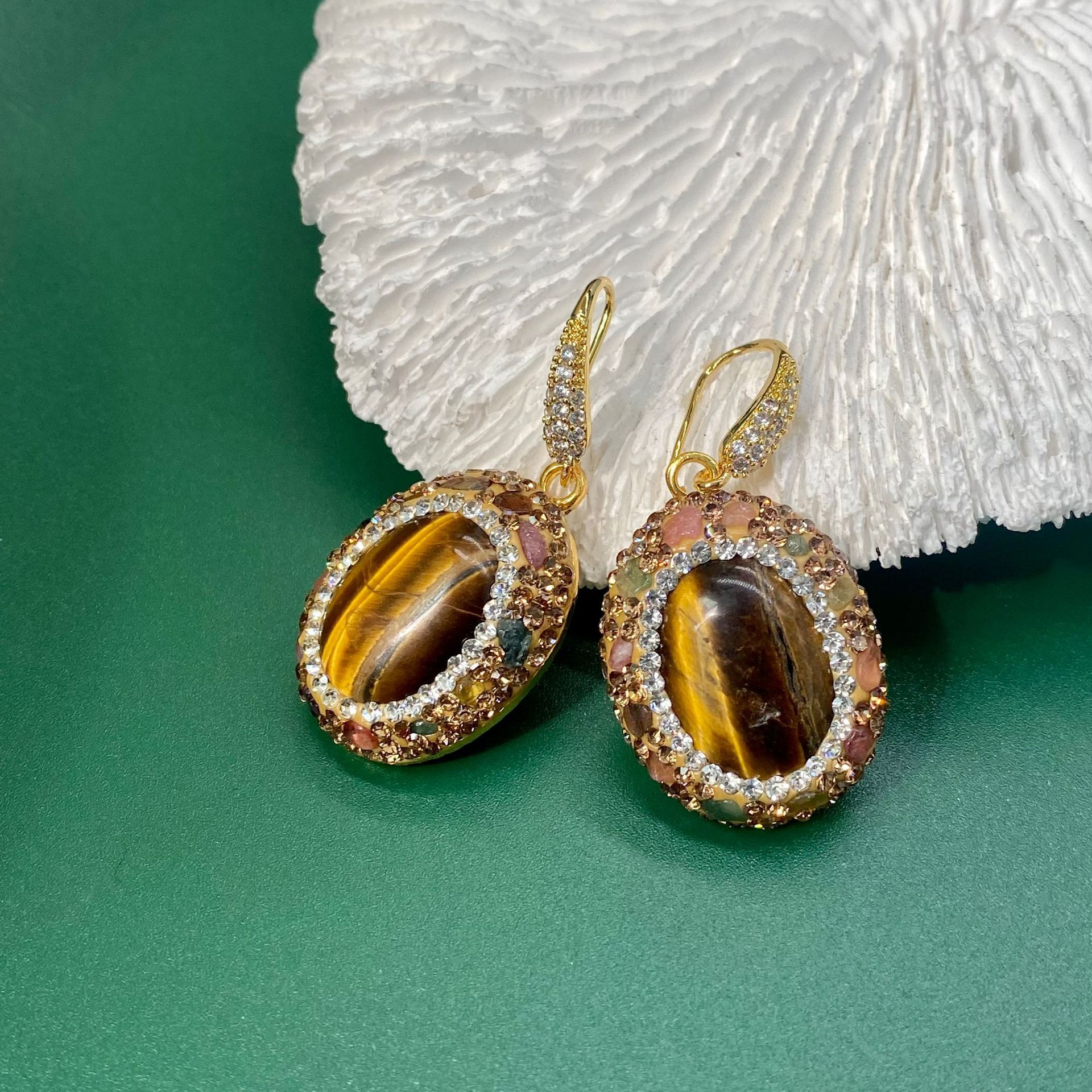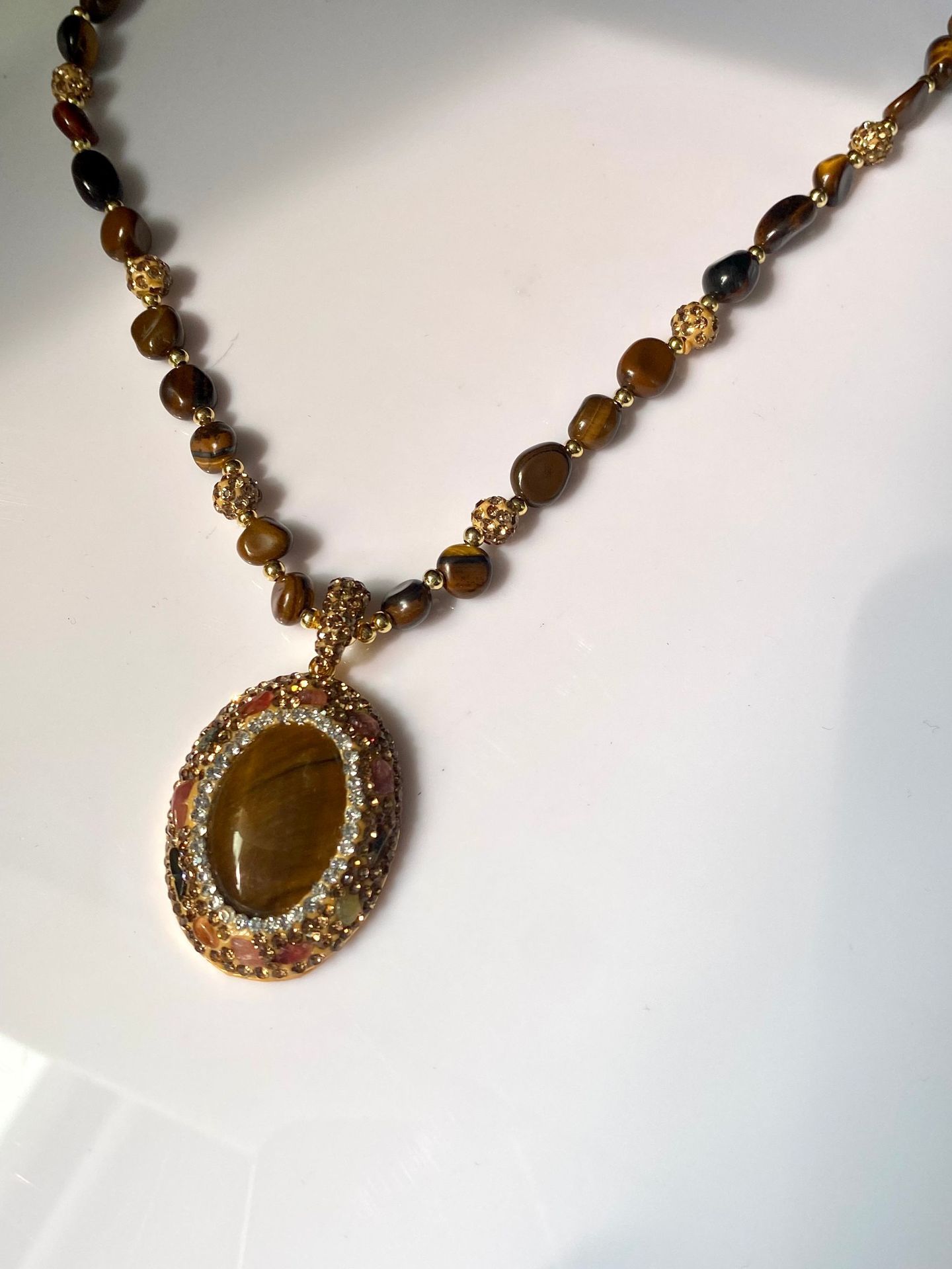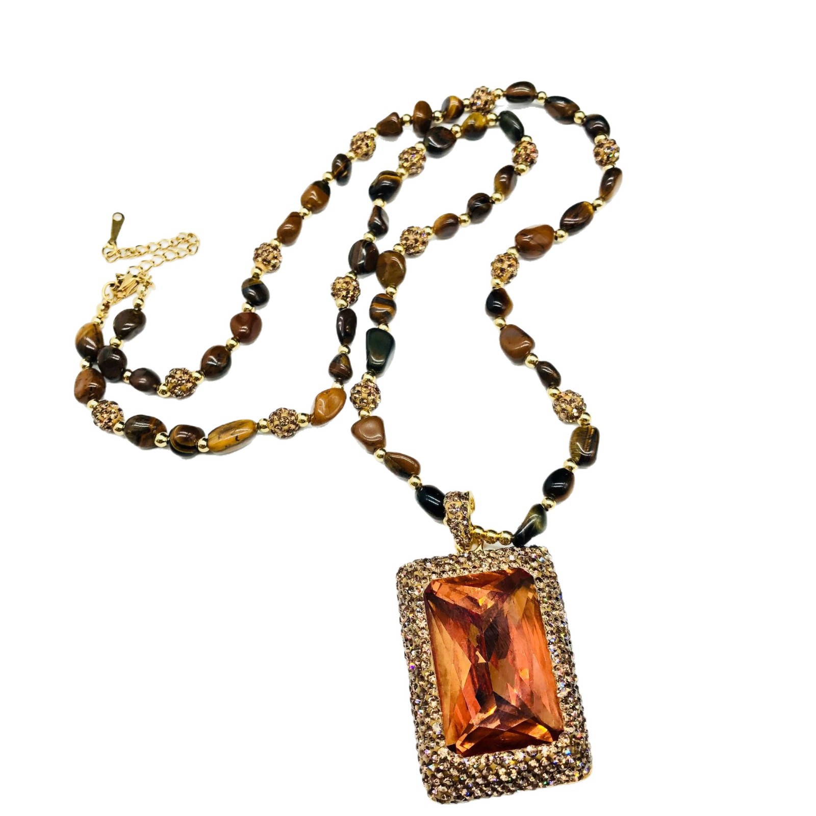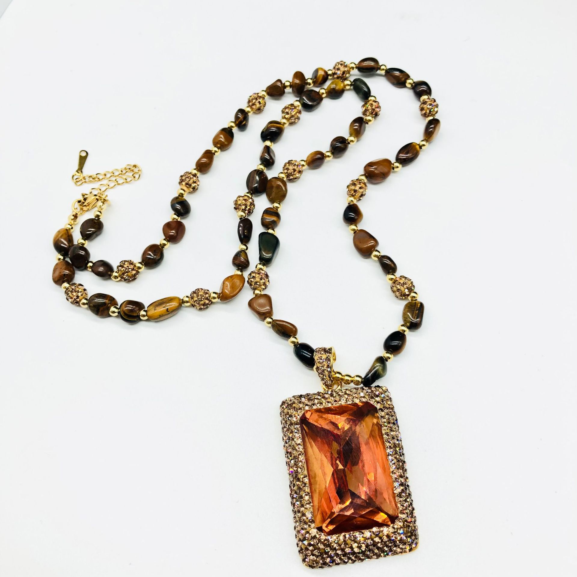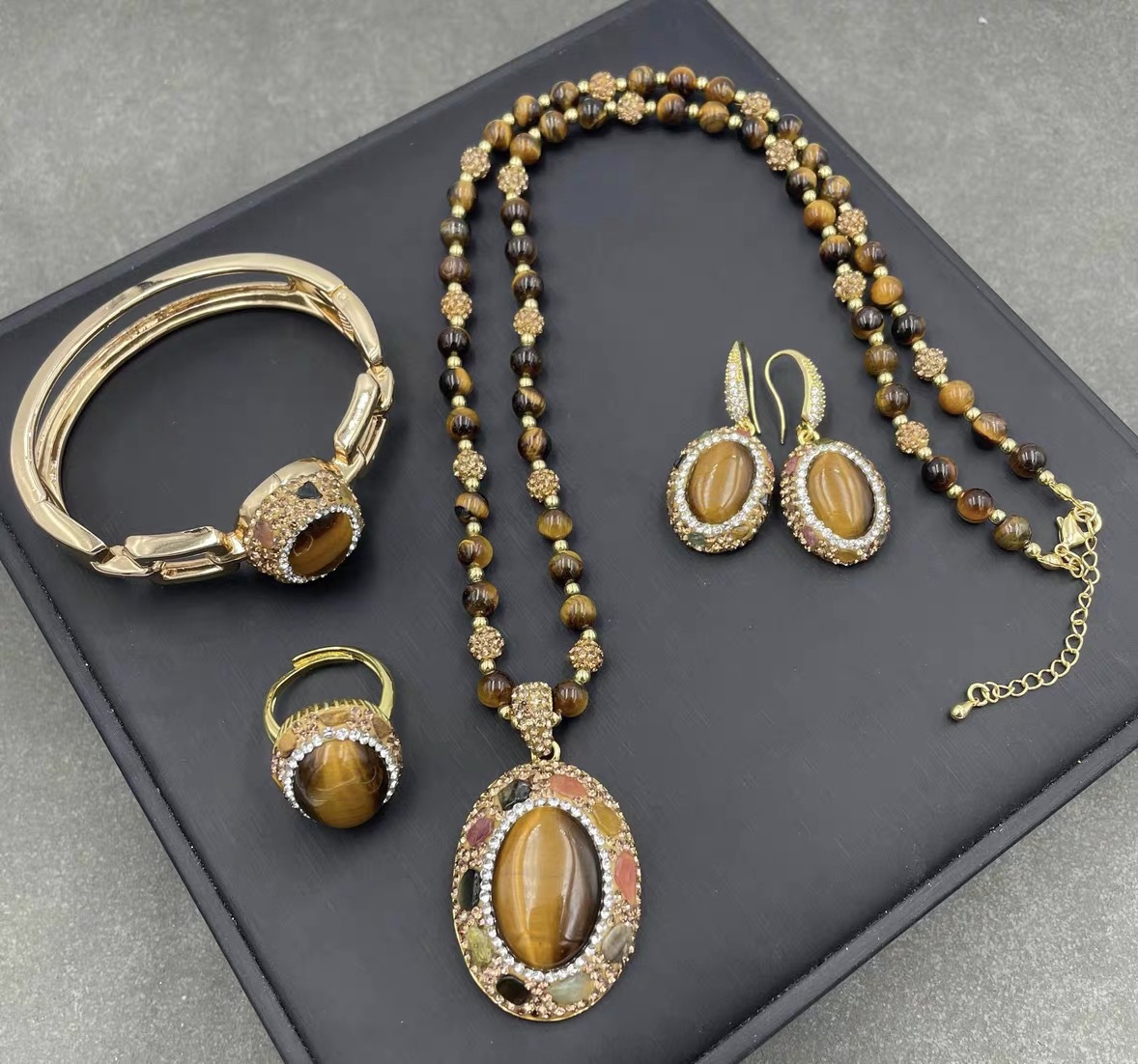 Light Color Changing Sudan Stone suit Pendant Necklace Ring Earrings Tiger Eye Stone Chain Women's Vintage Fashion Elegant