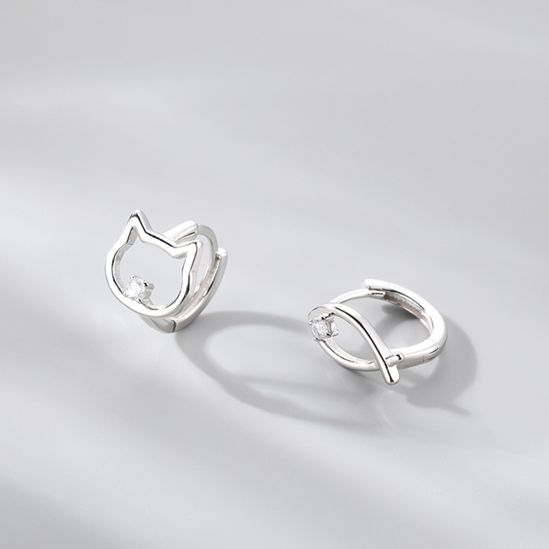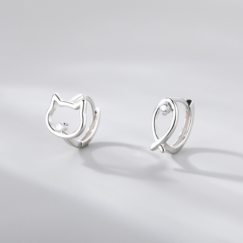 Asymmetric Cat Fish Ear Buckle Women's Light Luxury Elegant Niche Design Sense Earrings 2024 New Autumn and Winter Earrings