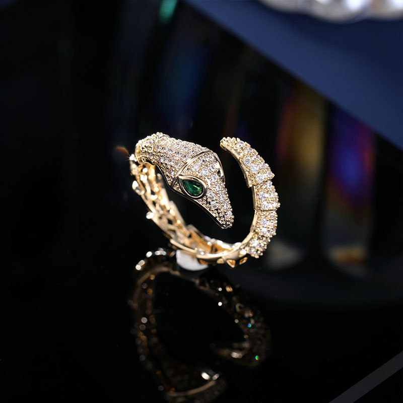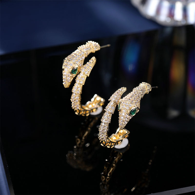 New Fashion Personality Simple Snake Head Earrings Ring European and American Micro-inlaid Zircon Elegant Snake Earrings Jewelry suit