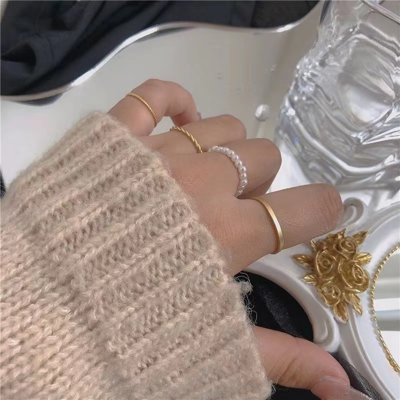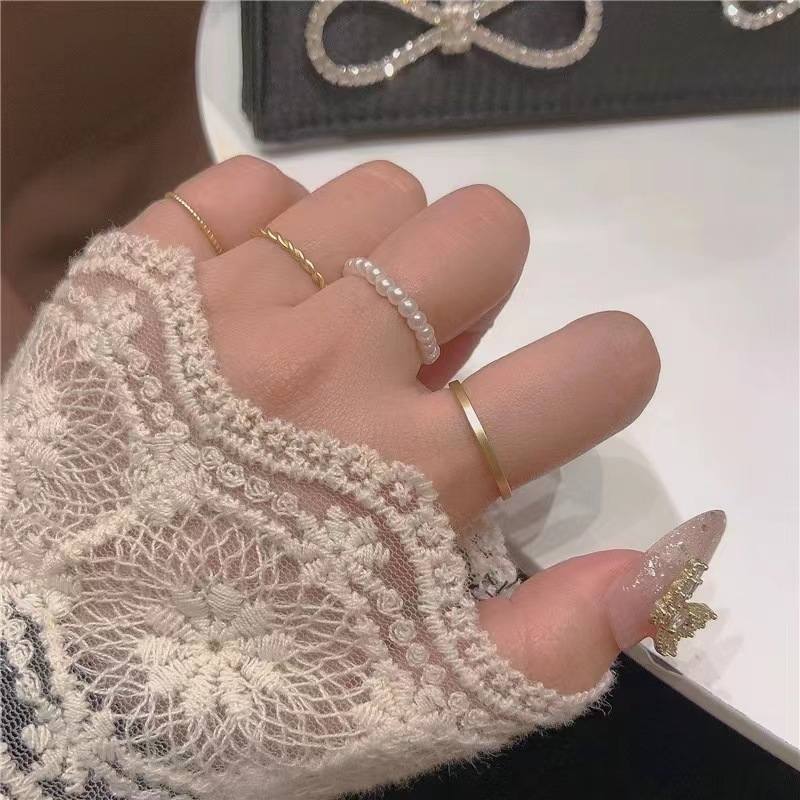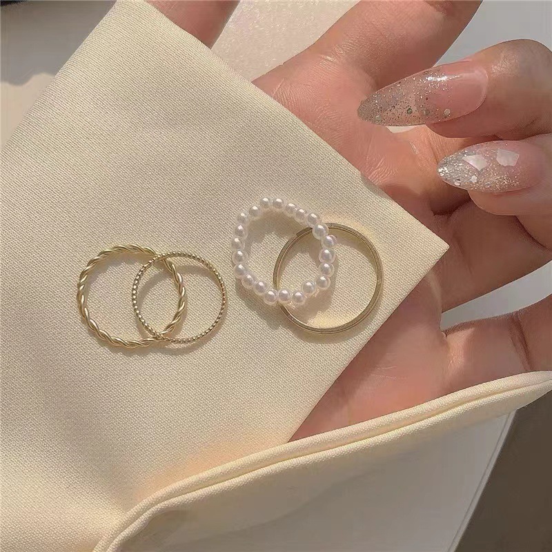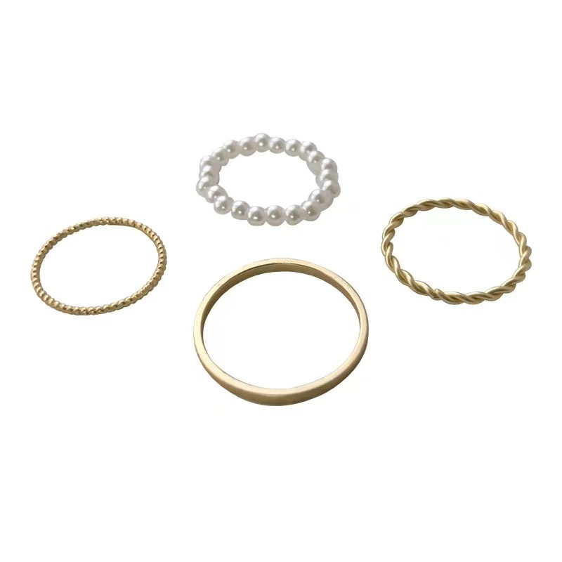 Combination Ring 4 Pack ~ Cold Wind Pearl Ring Stacked to Wear Joint Ring Women's Ins Dummy High-grade Sense Ring Tide