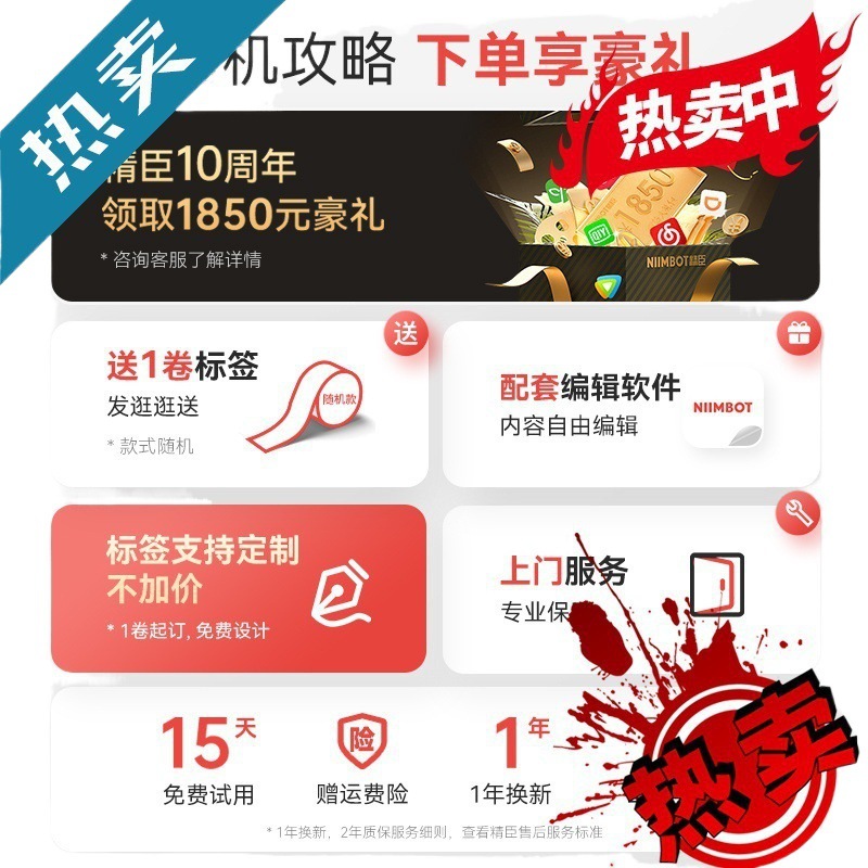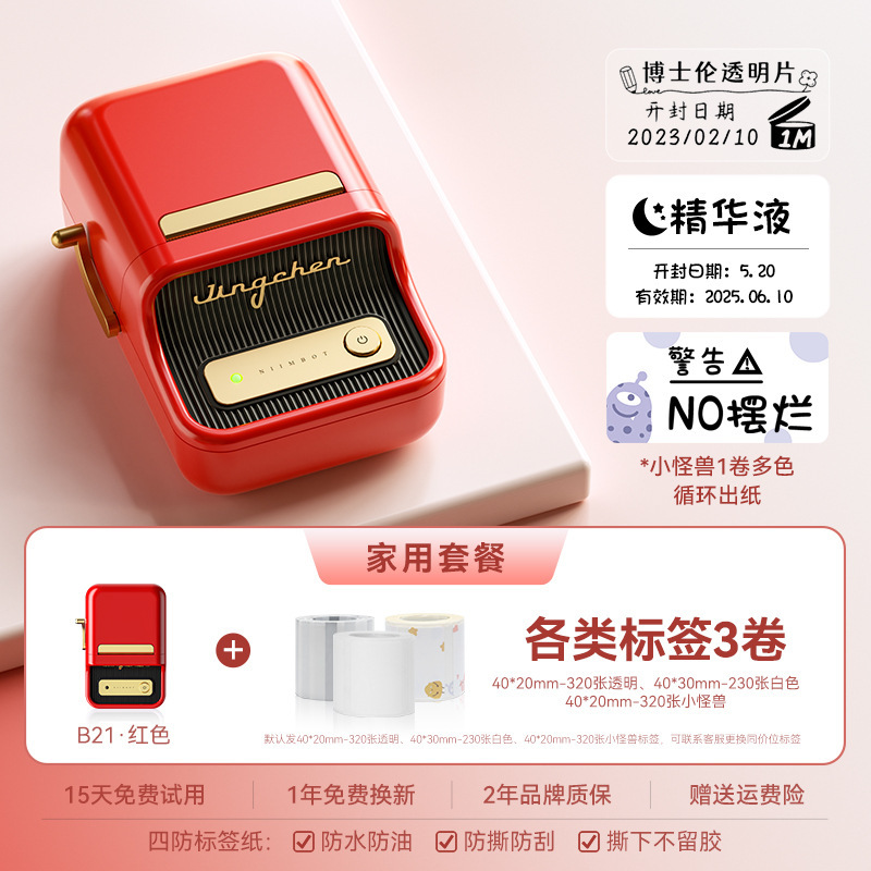 Specifications: Red + optional 6 rolls of four-proof white labels (including 1 free roll) - official standard configuration