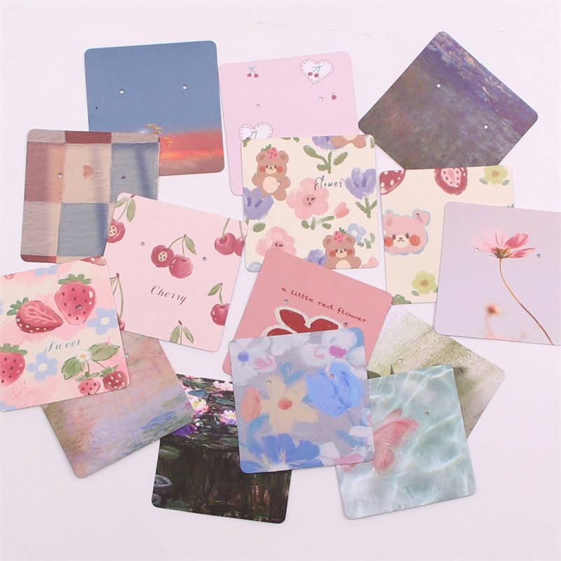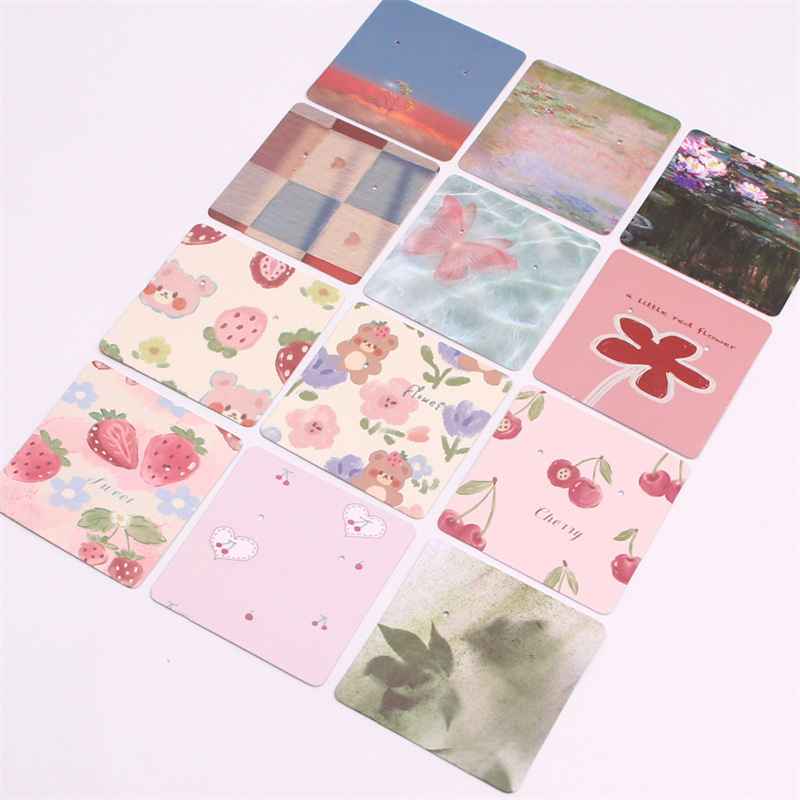 Specifications and models: Watercolor cartoon earrings card no. 2; 6*6cm (please take an integer multiple of 100 for a single style)