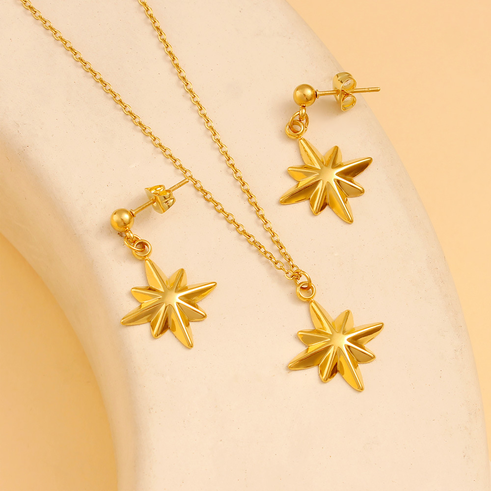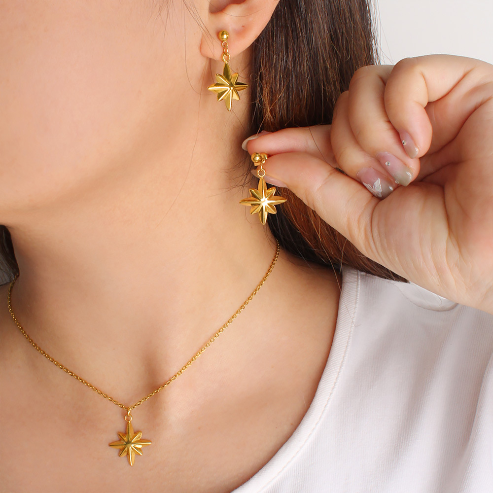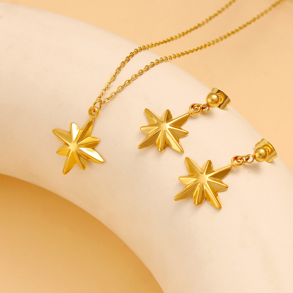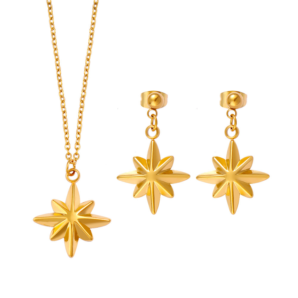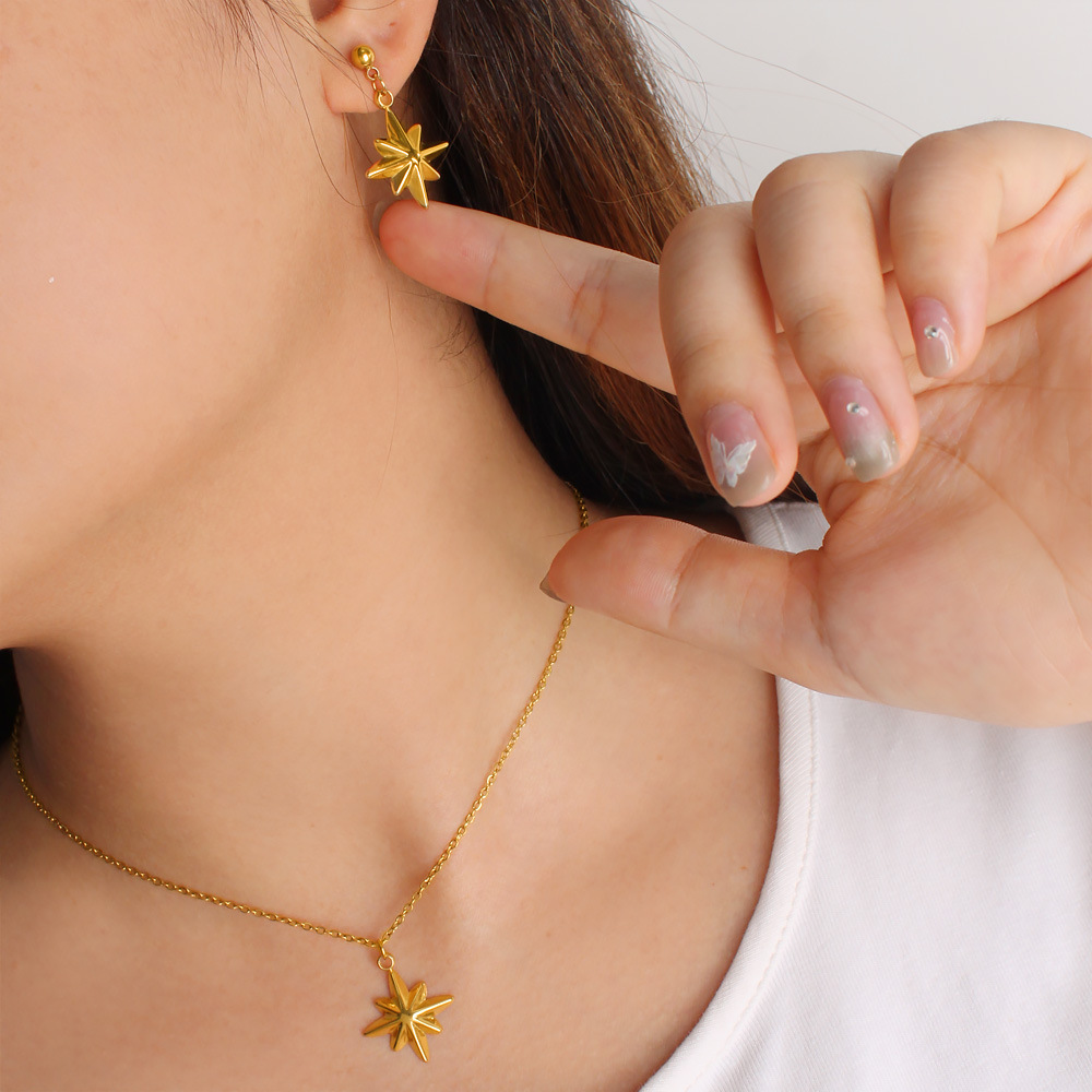 South Korea new titanium steel eight mans star clavicle chain earrings INS tide net red 18K star pendant necklace earrings suit