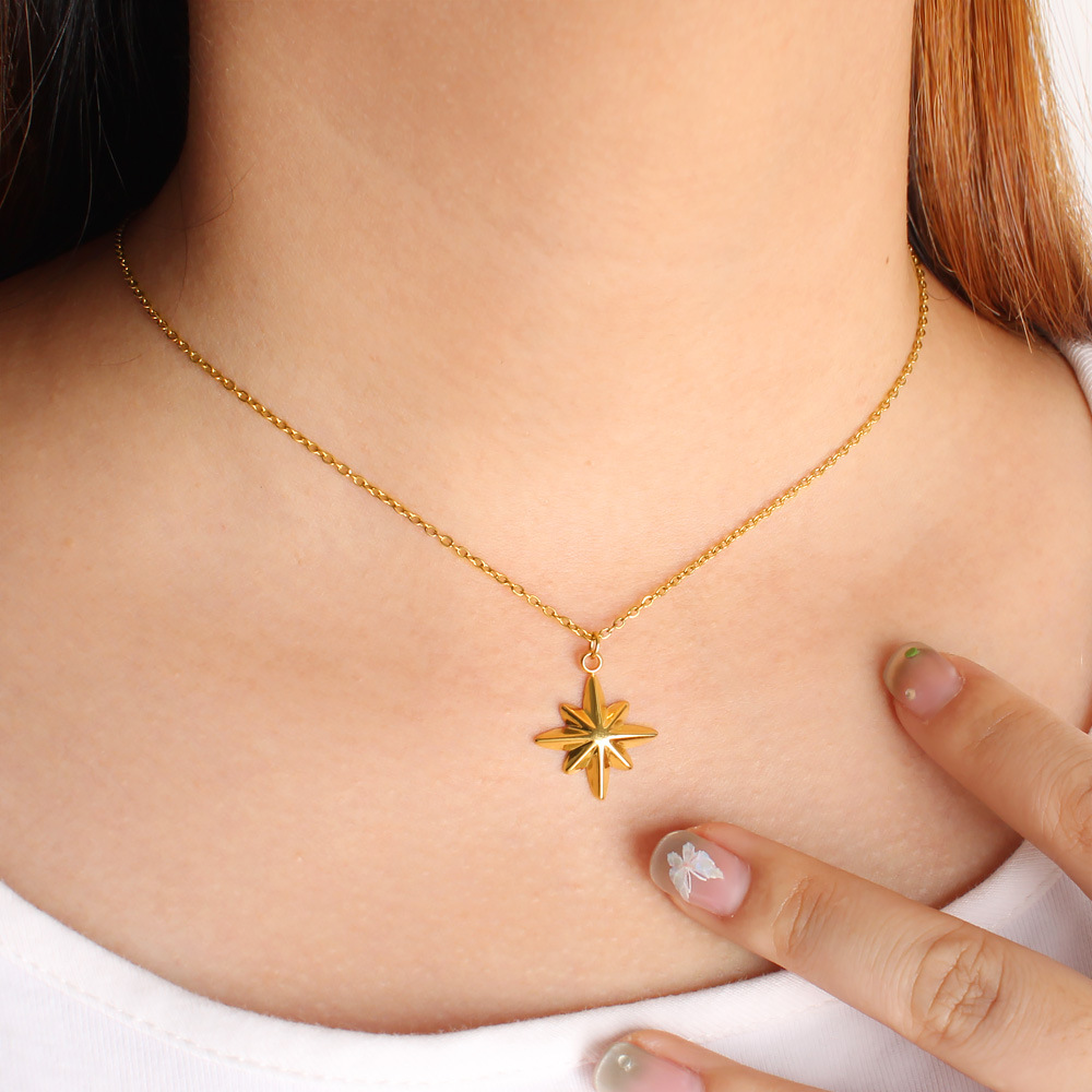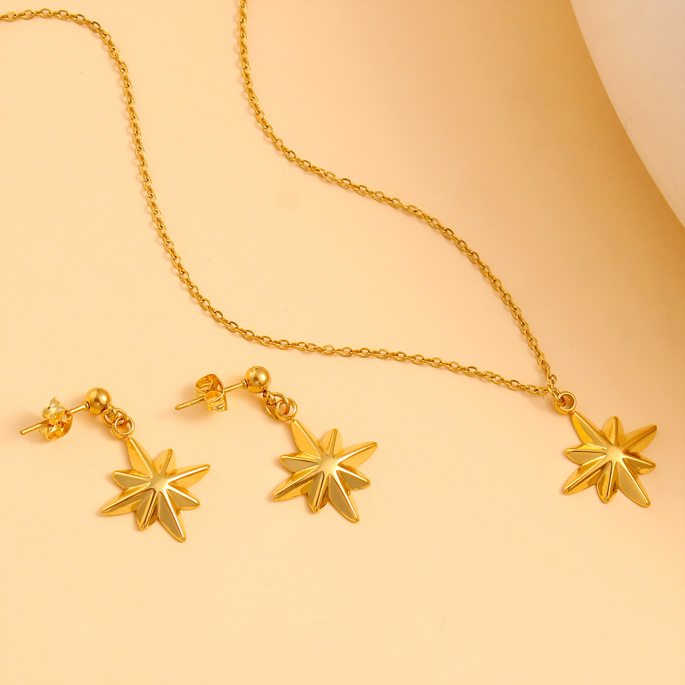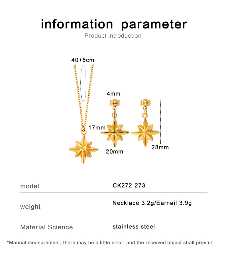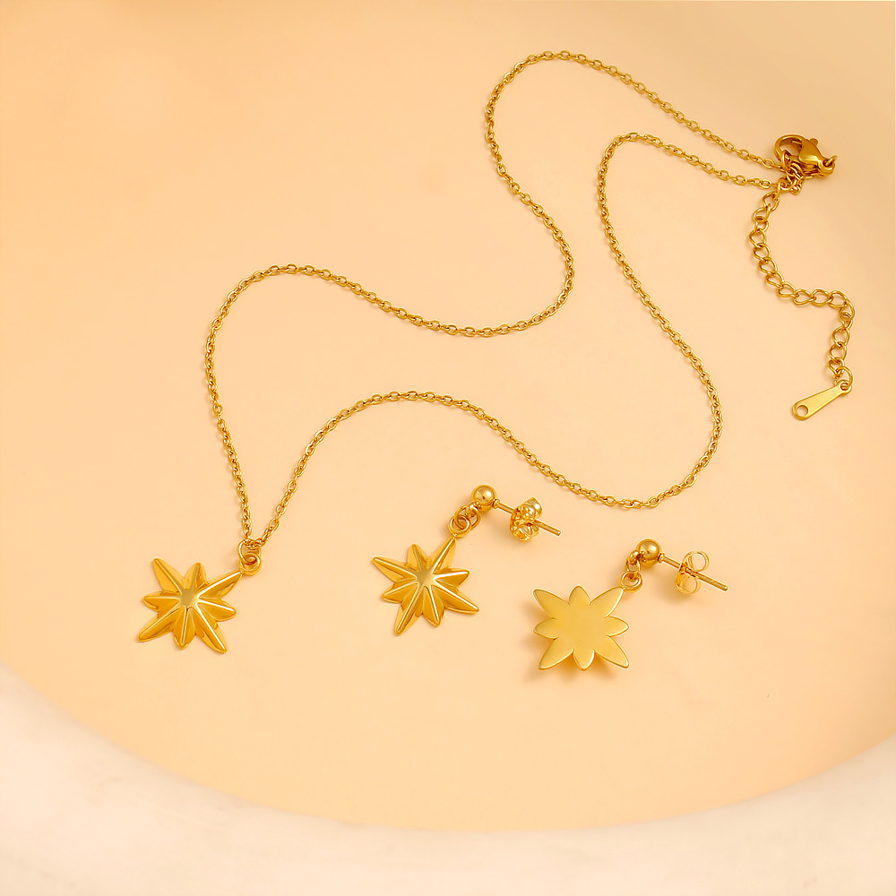 South Korea new titanium steel eight mans star clavicle chain earrings INS tide net red 18K star pendant necklace earrings suit