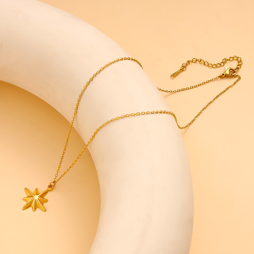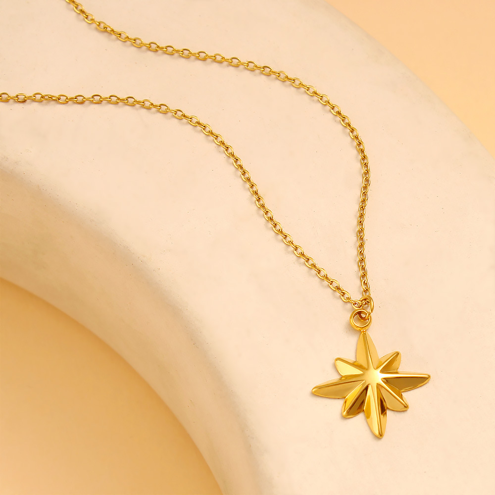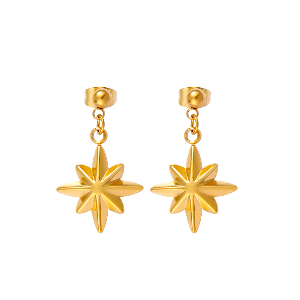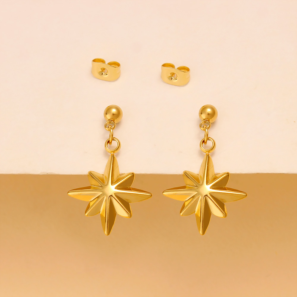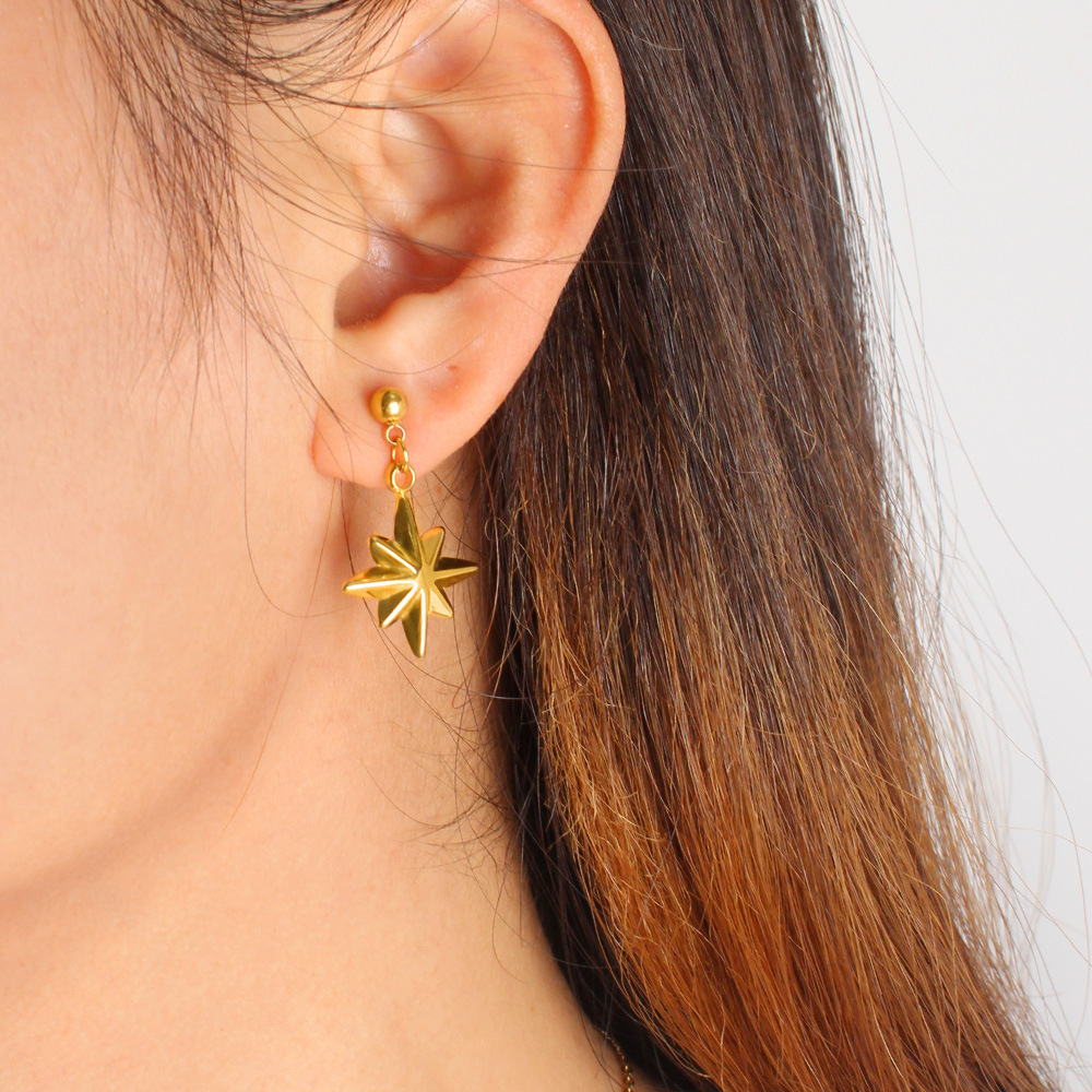 South Korea new titanium steel eight mans star clavicle chain earrings INS tide net red 18K star pendant necklace earrings suit