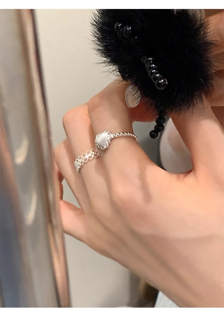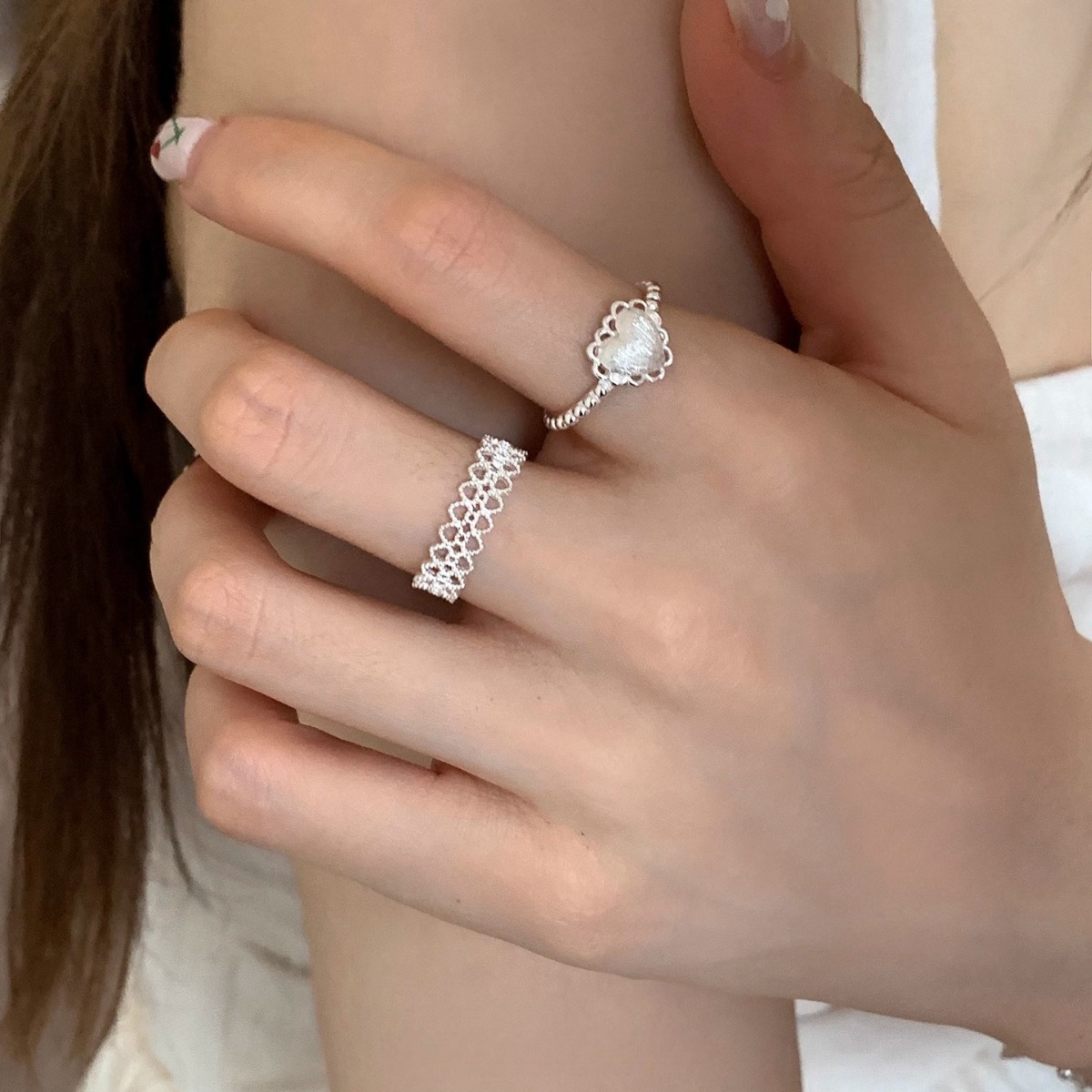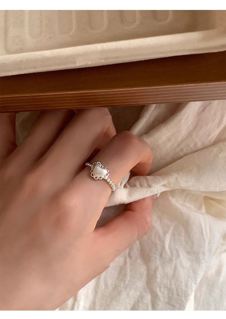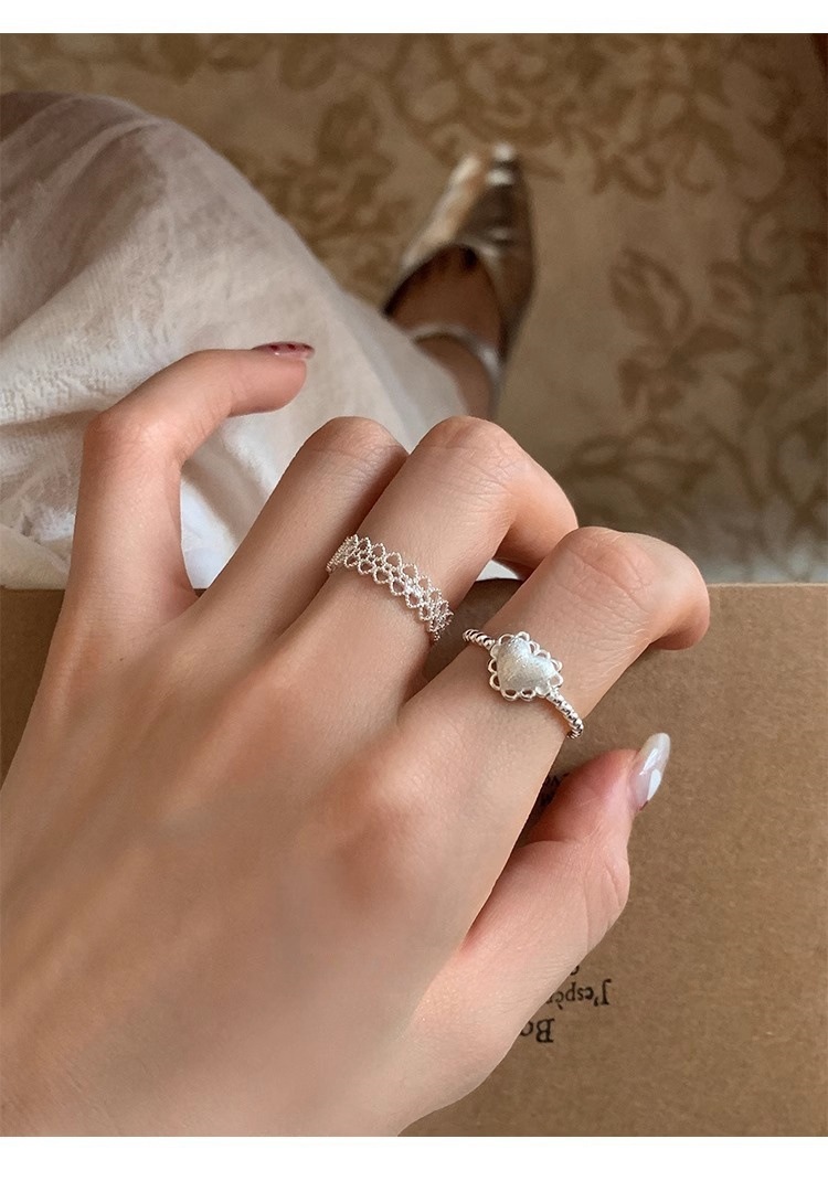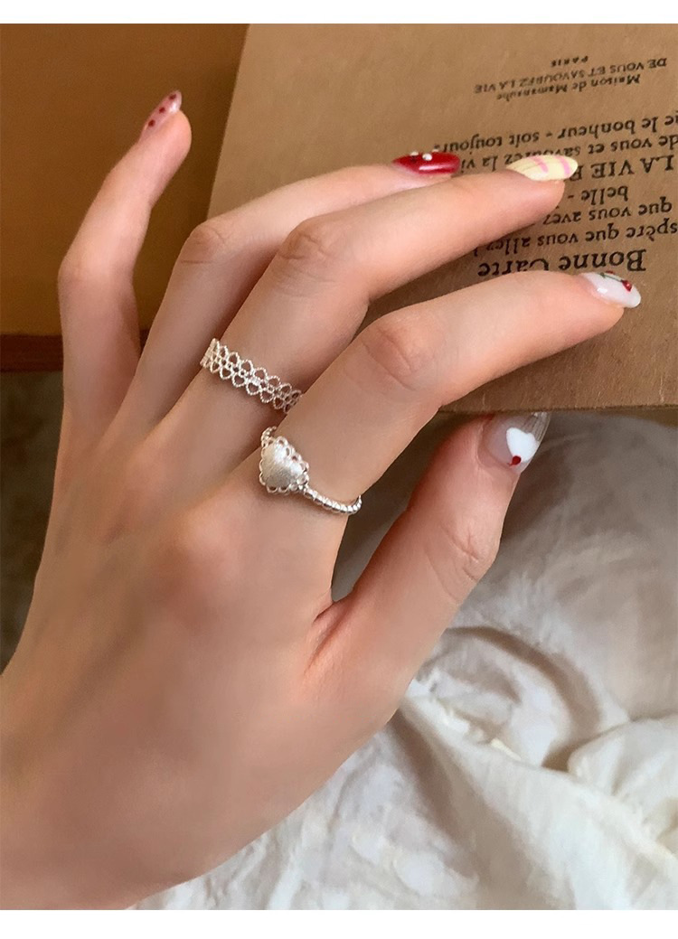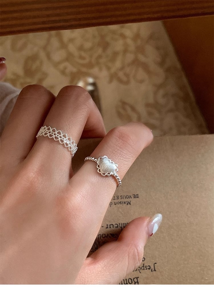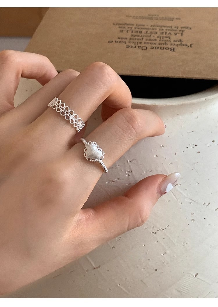 Lace Edge Pure Love silver Ring Light Luxury Niche Advanced Finger Ring Elegant All-match Adjustable Women
