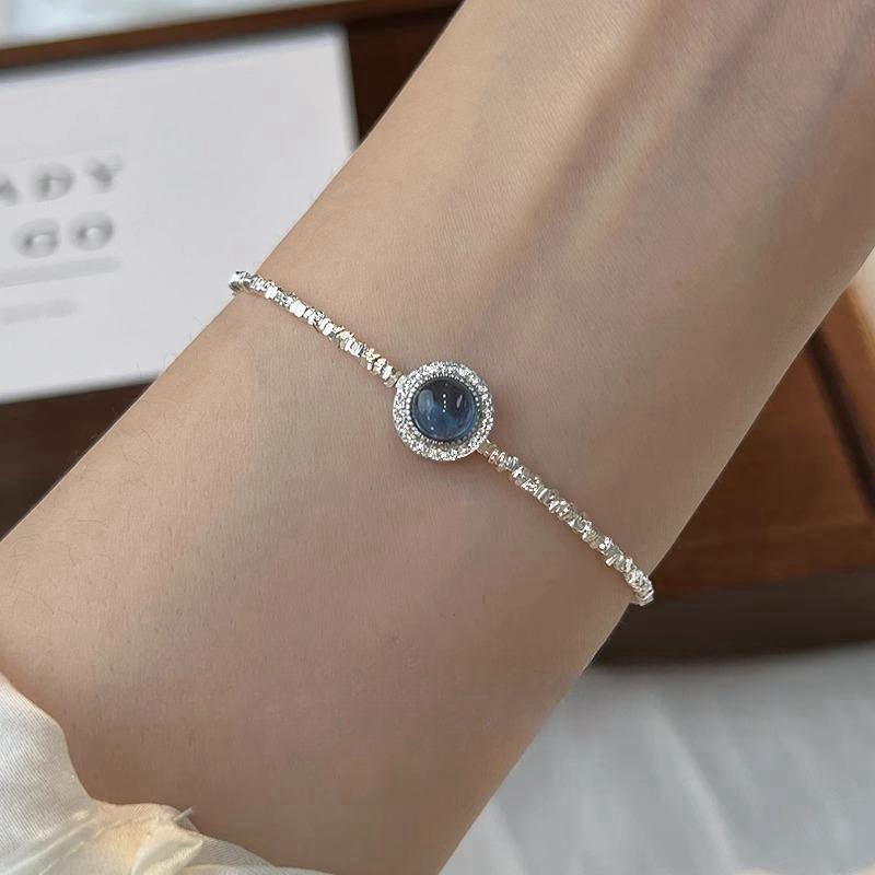 New Aquamarine Broken Silver Pearl with Diamond Cat's Eye Bracelet Casual Girls Girlfriend Gift Jewelry Live Wholesale