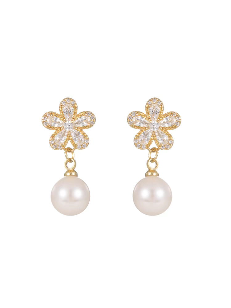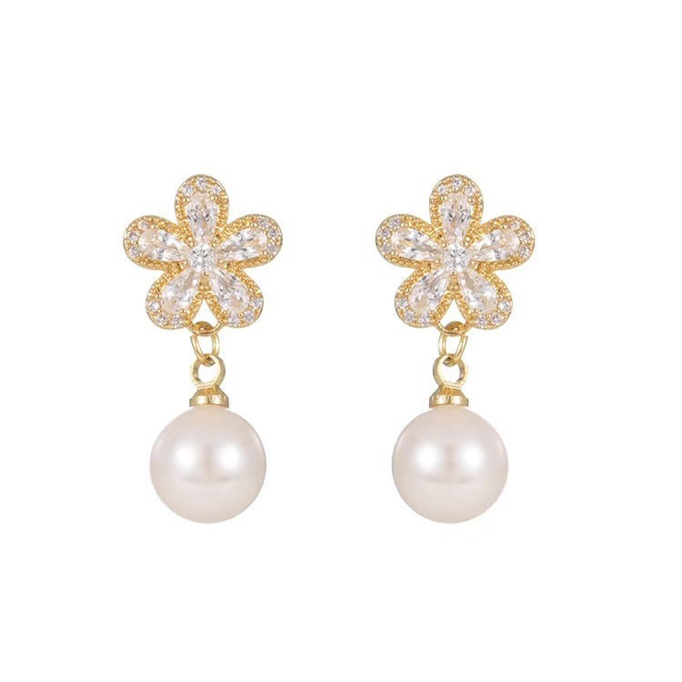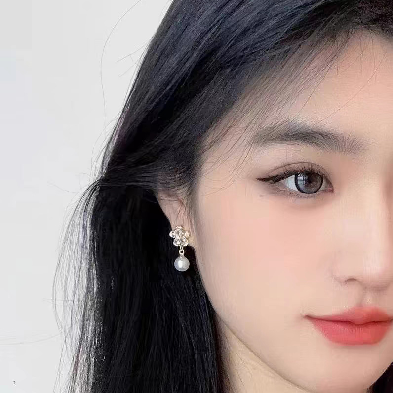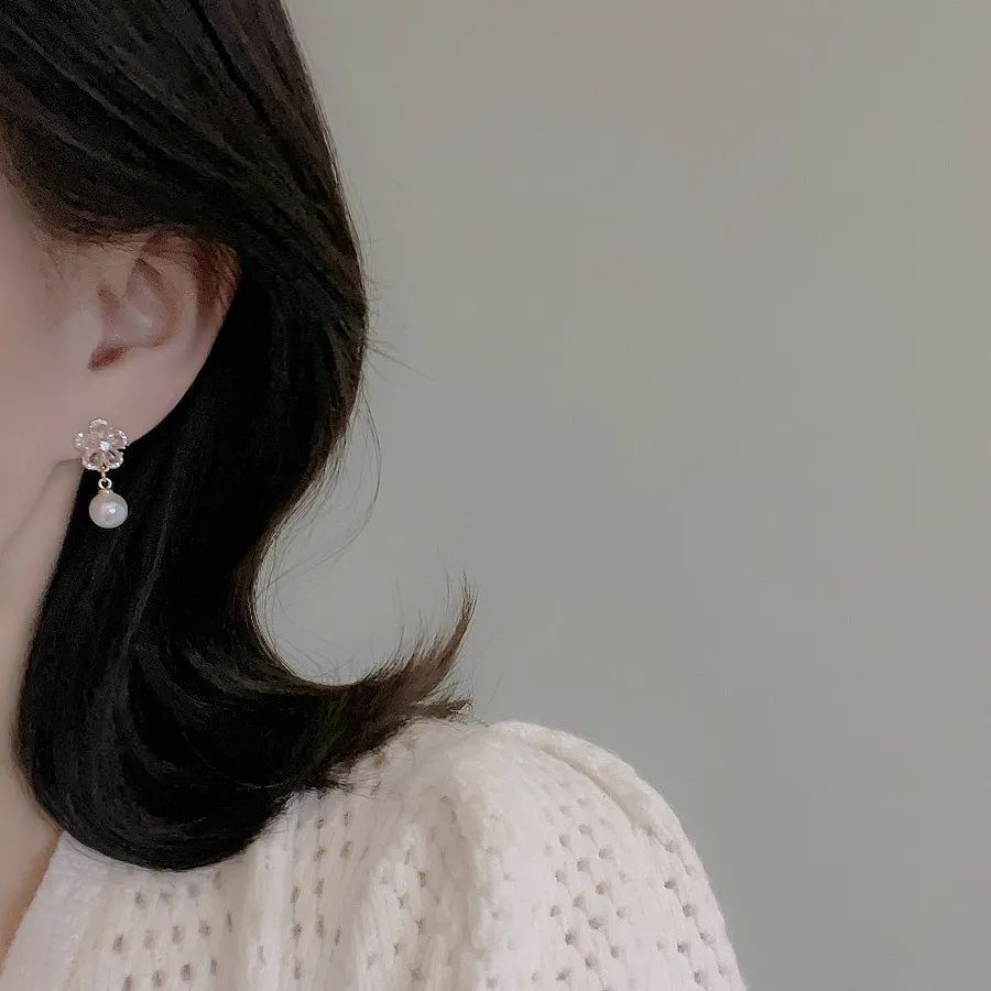 925 Silver Pin Elegant Pink Flower Pearl Earrings Women 2024 New Explosions Ear Studs Niche All-match Earrings