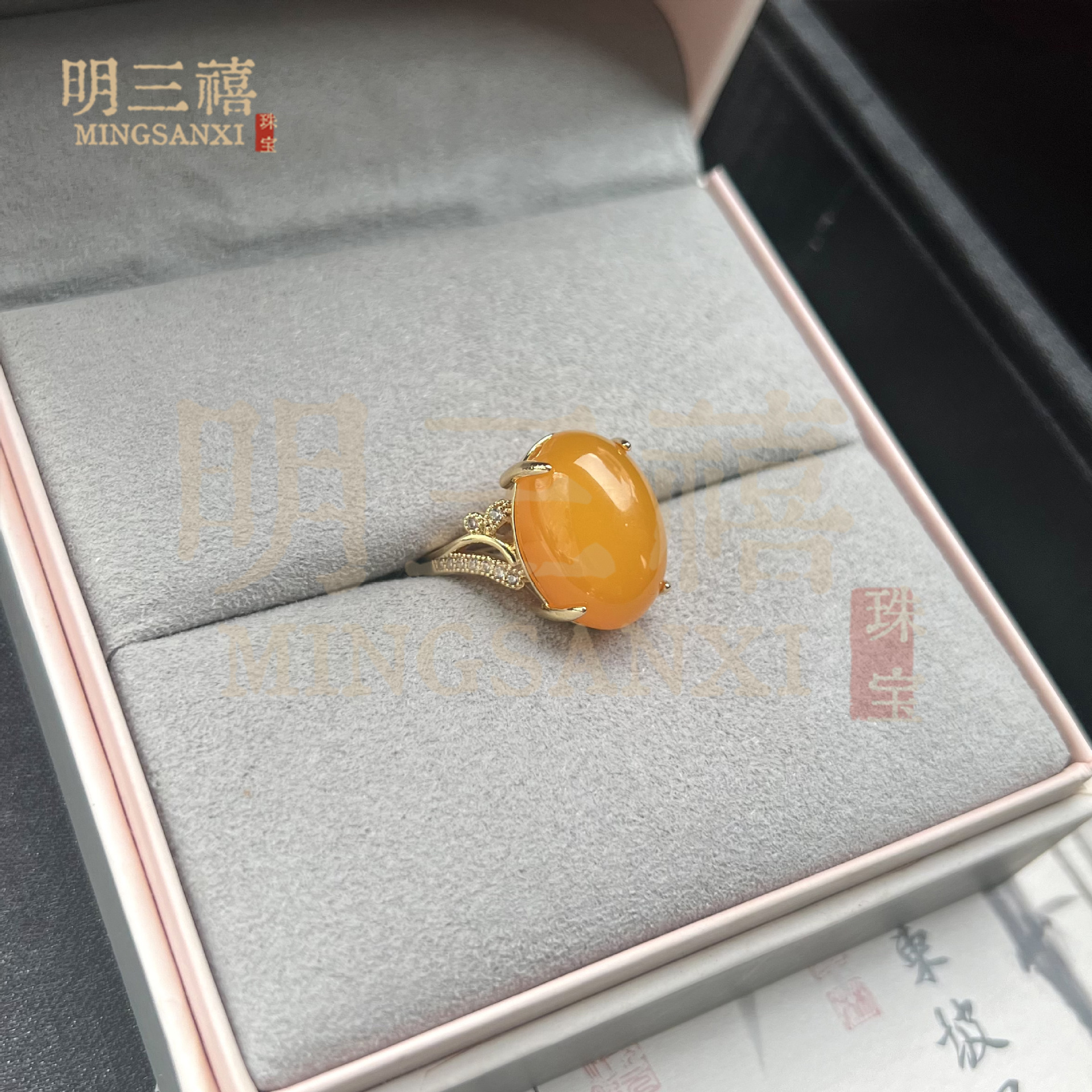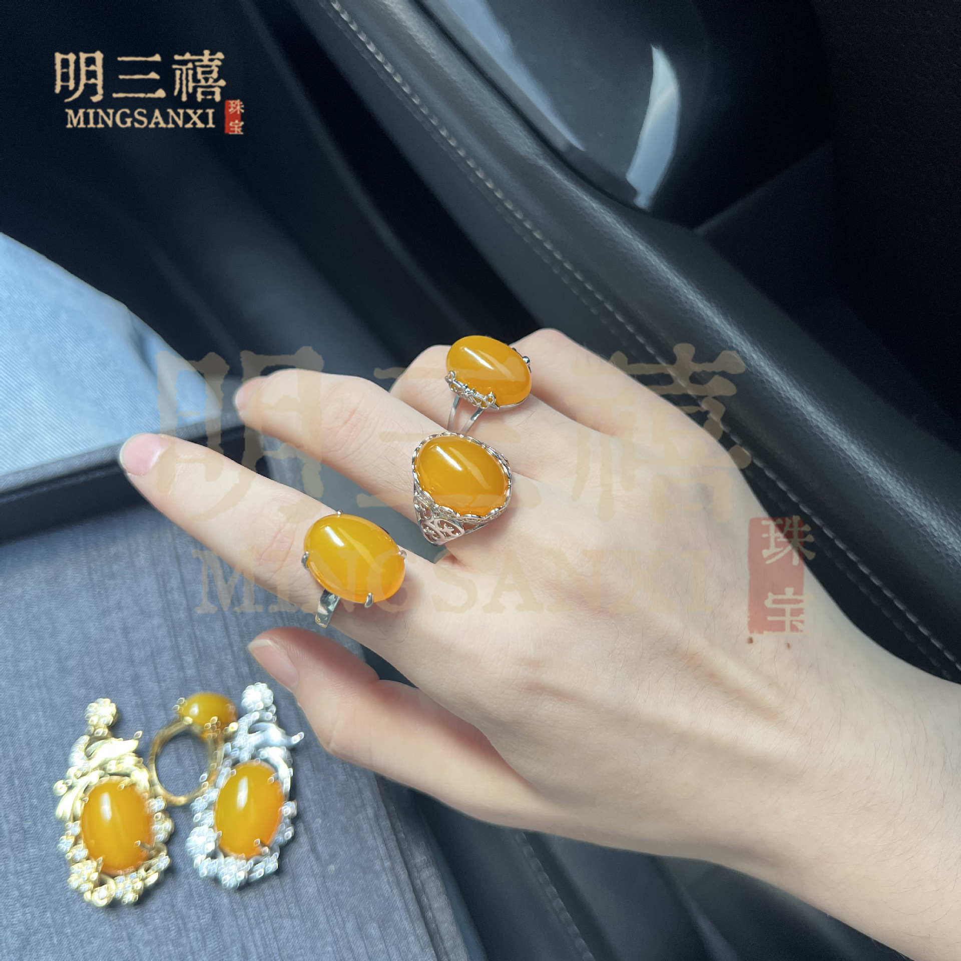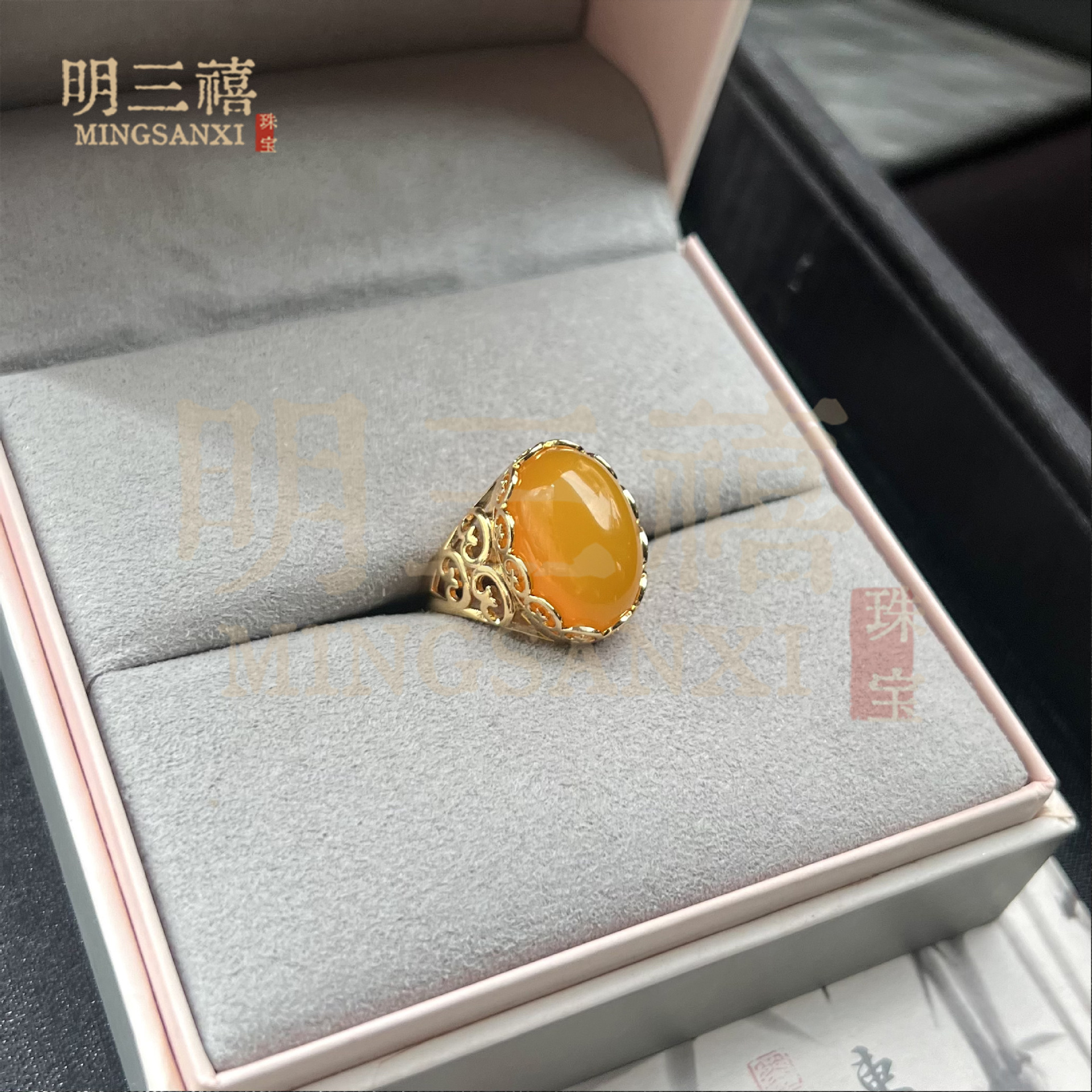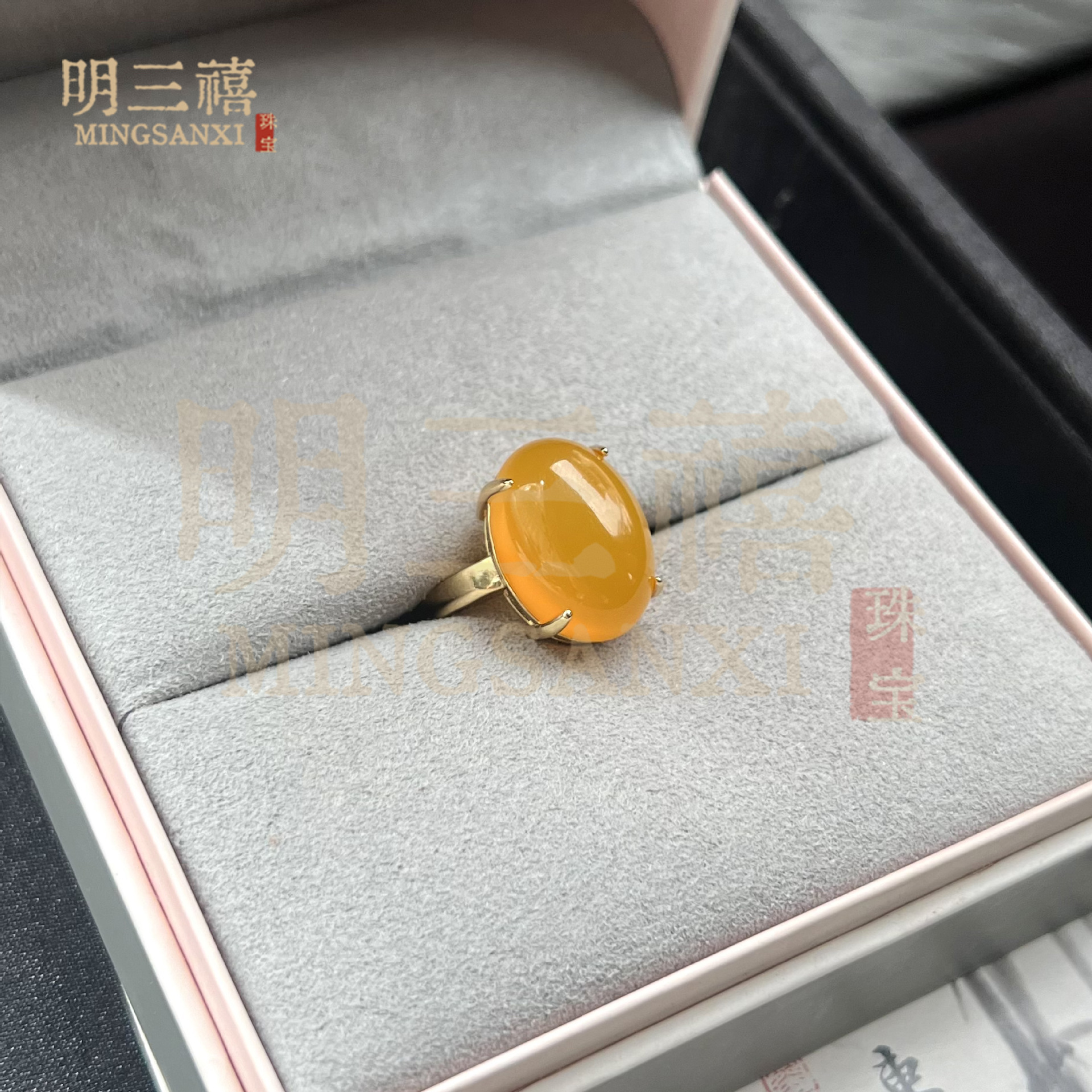 Live supply agate high-grade men's and women's gold-plated inlaid live chalcedony imitation beeswax ring vintage jewelry
