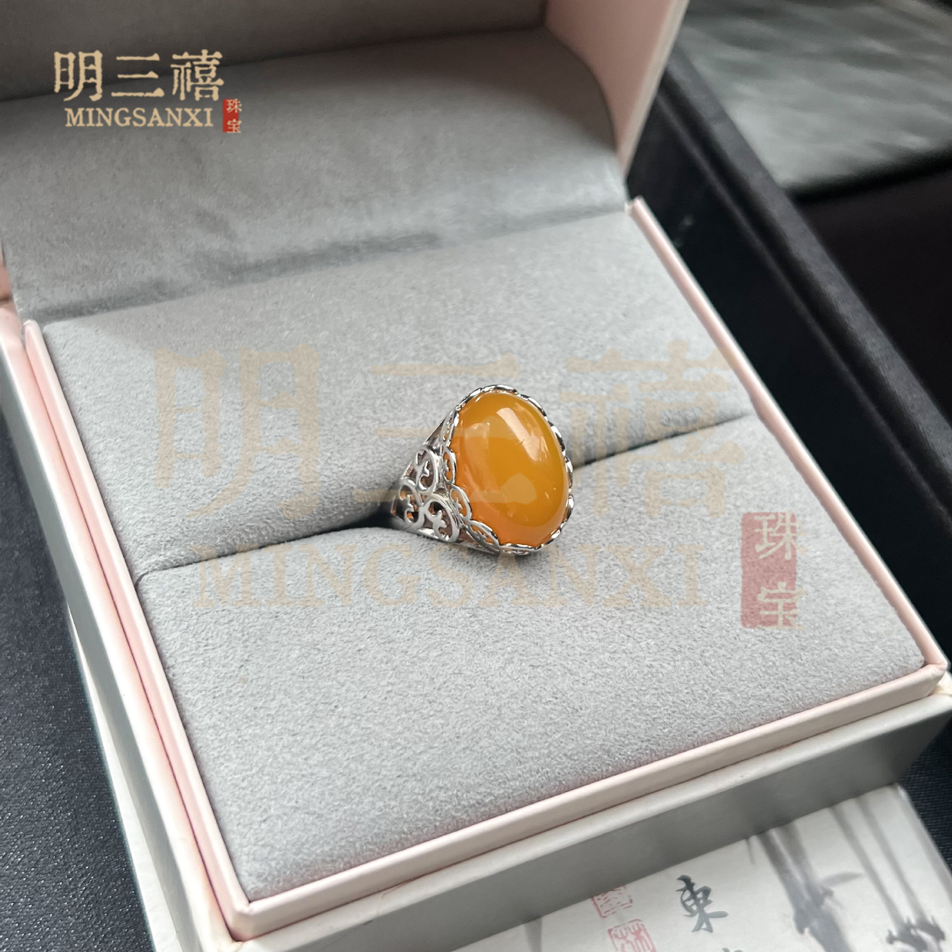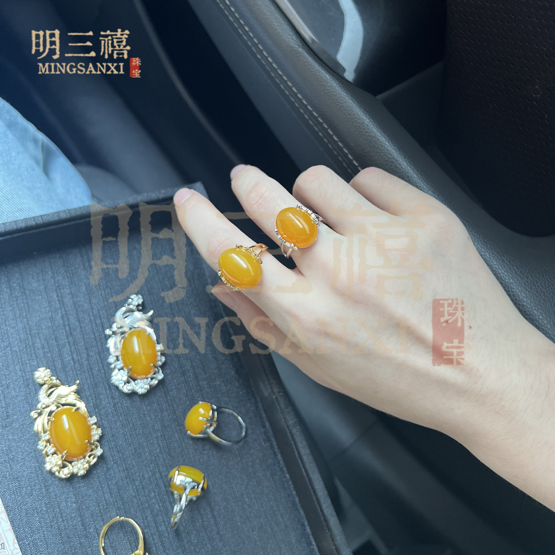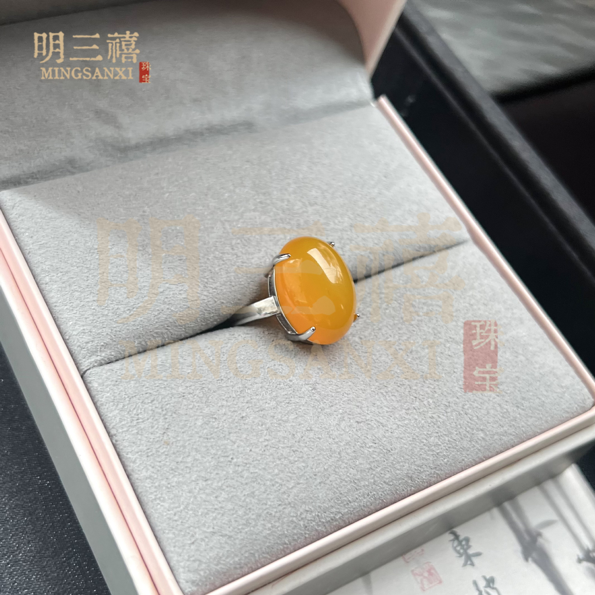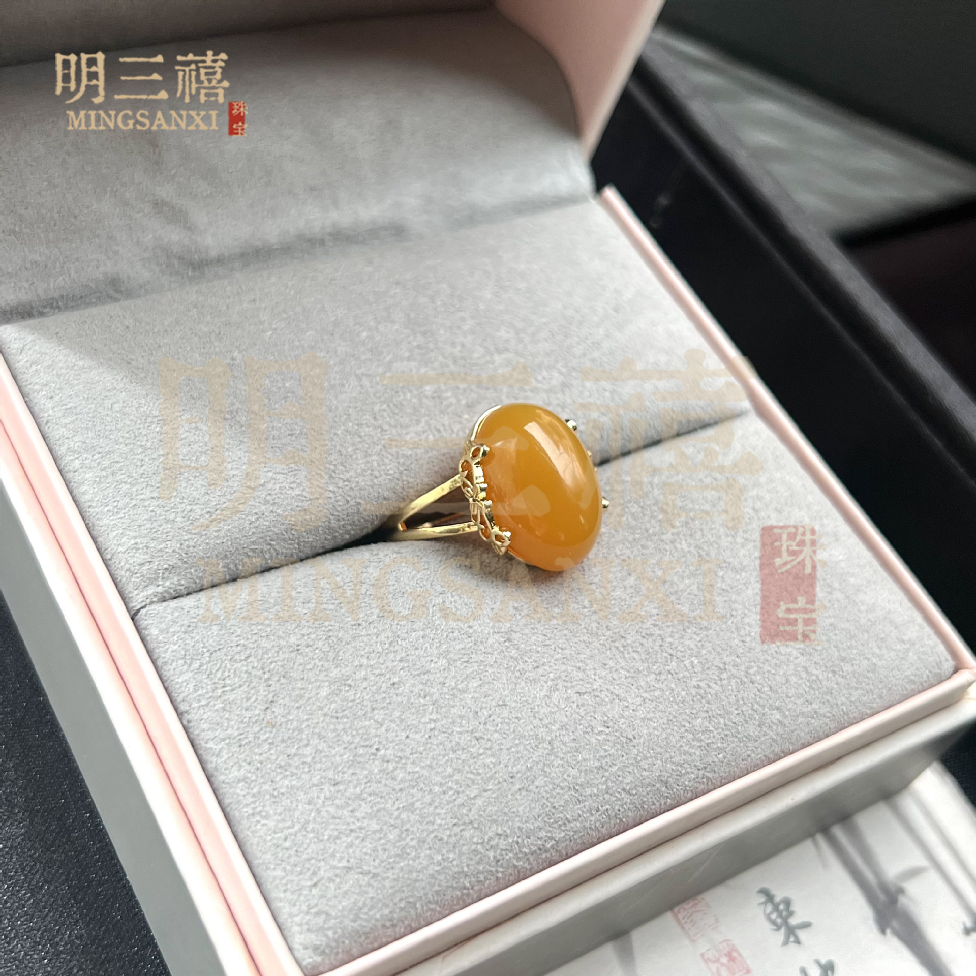 Live supply agate high-grade men's and women's gold-plated inlaid live chalcedony imitation beeswax ring vintage jewelry