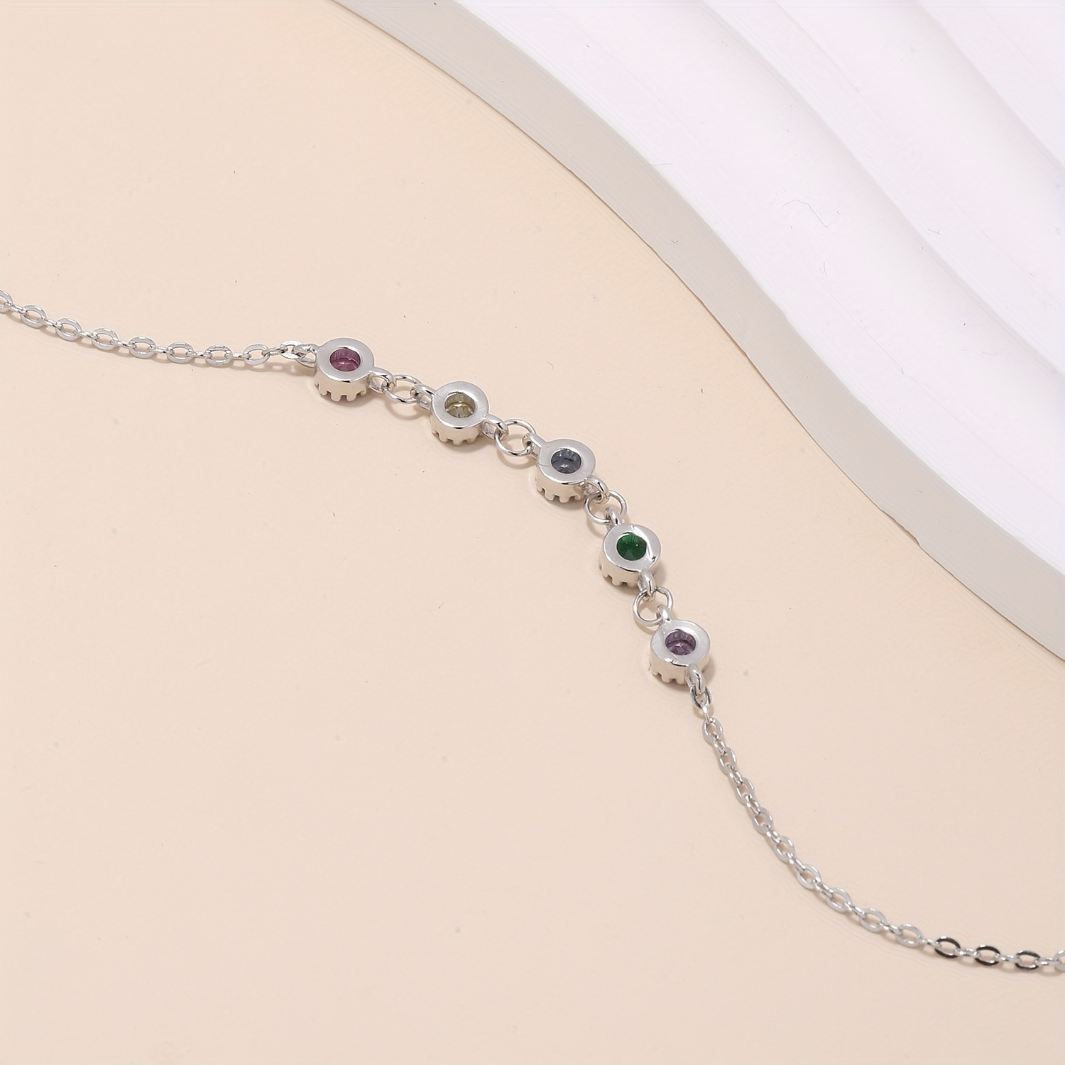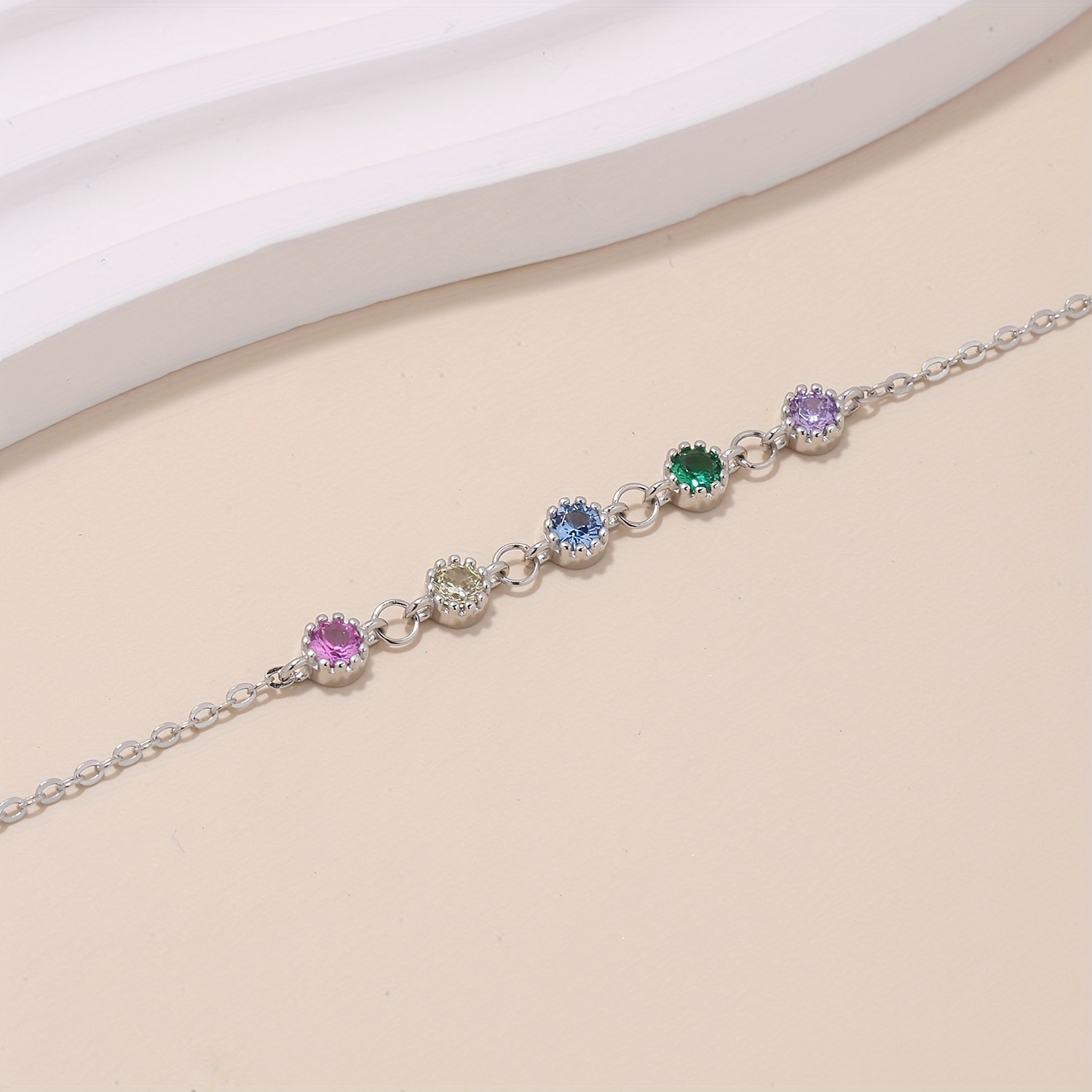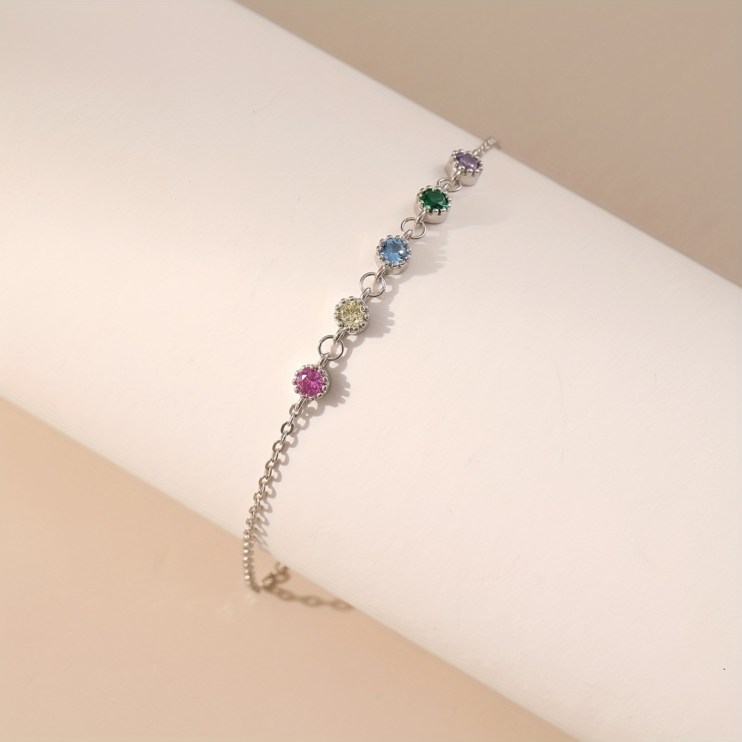 1 Piece of 925 Silver Trendy and Fashionable Random Colorfulful Zircon Chain Bracelet Valentine's Day Anniversary Gift Simple Design