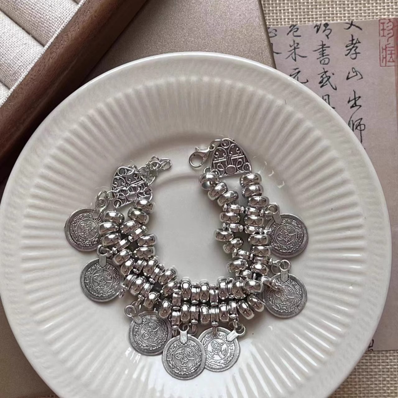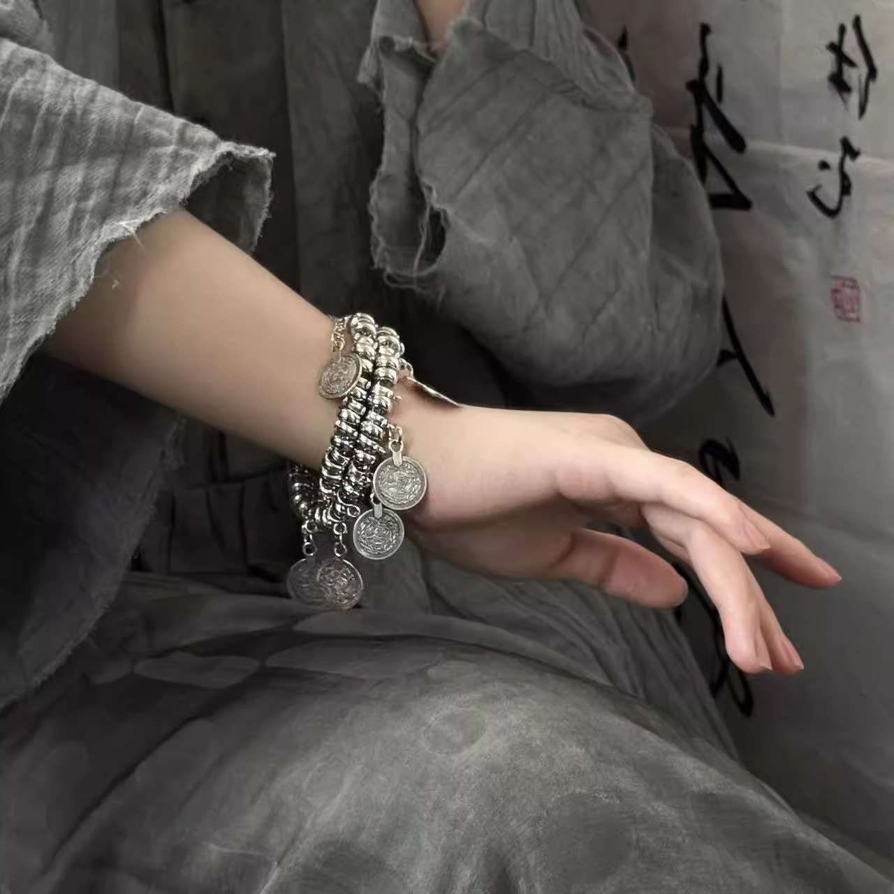 2025 New Chinese Ethnic Style Retro Heavy Industry Tassel Metallic Cool Niche Easiest for Match Alloy Personalized Bracelet