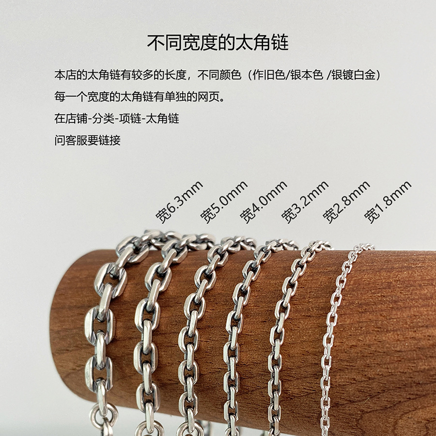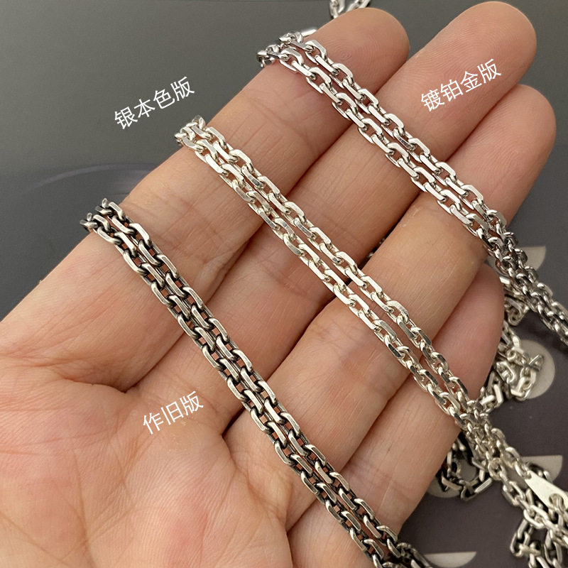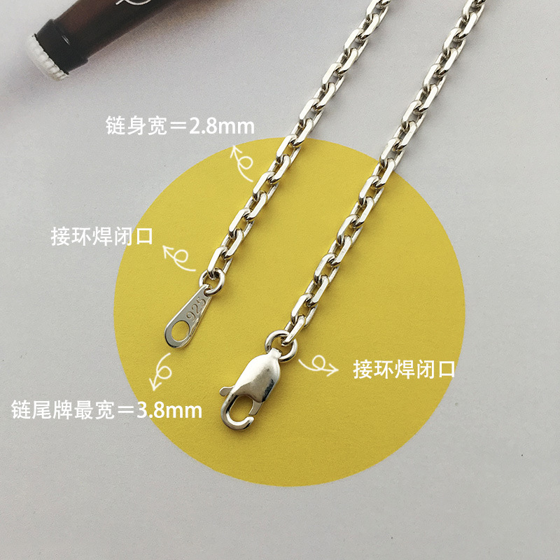2.8mm Too Angle Chain Men's Fashionable Necklace Used as Old Platinum Plated Chain Clavicle Necklace Chain Hanging Ring