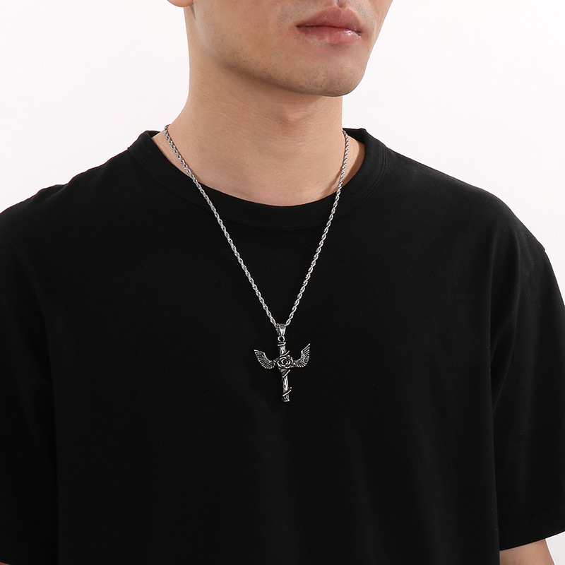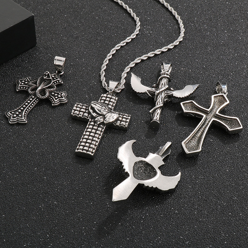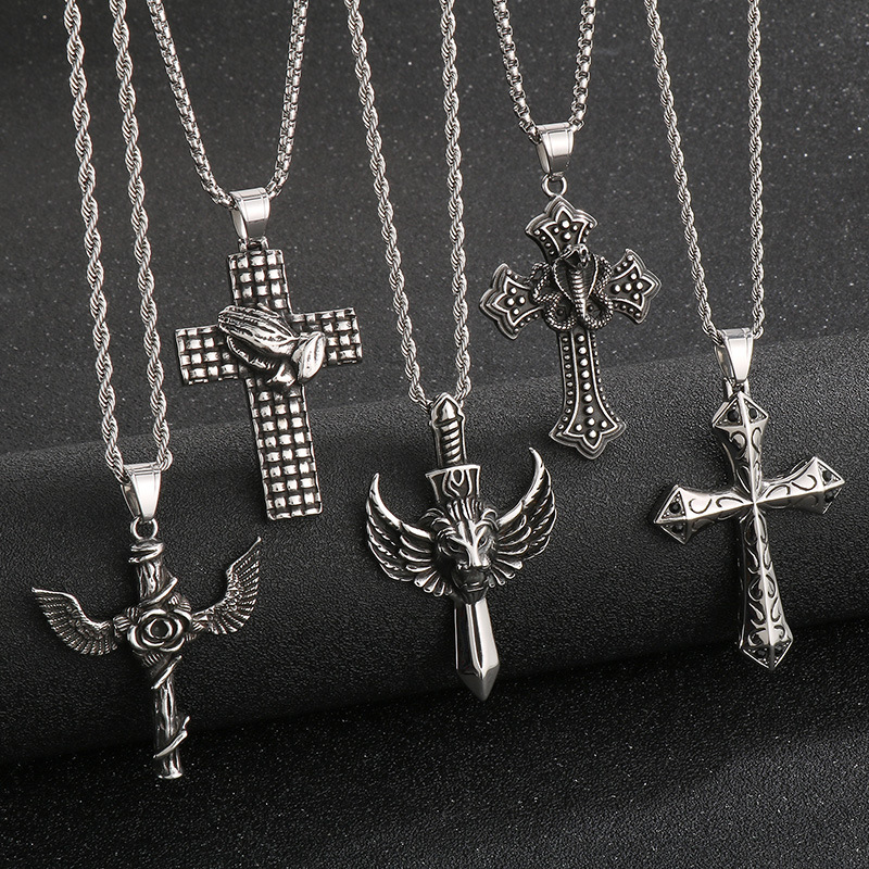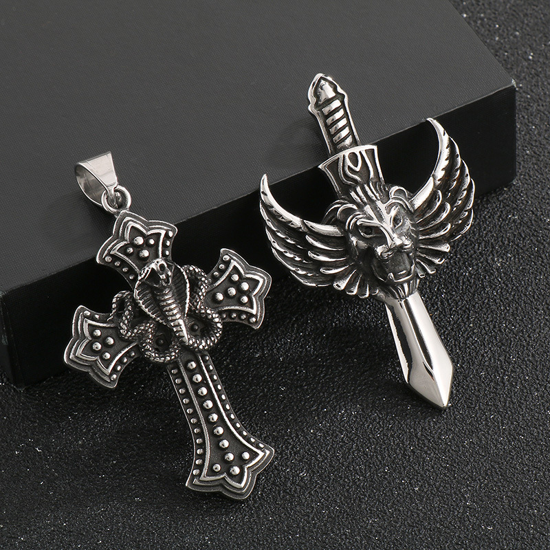 Fashion Flying Wing Pendant Gothic Lion Head Rose Cross Wings Titanium Steel Men's Pendant