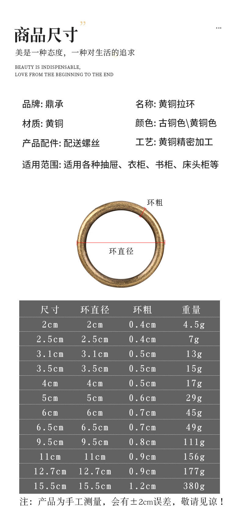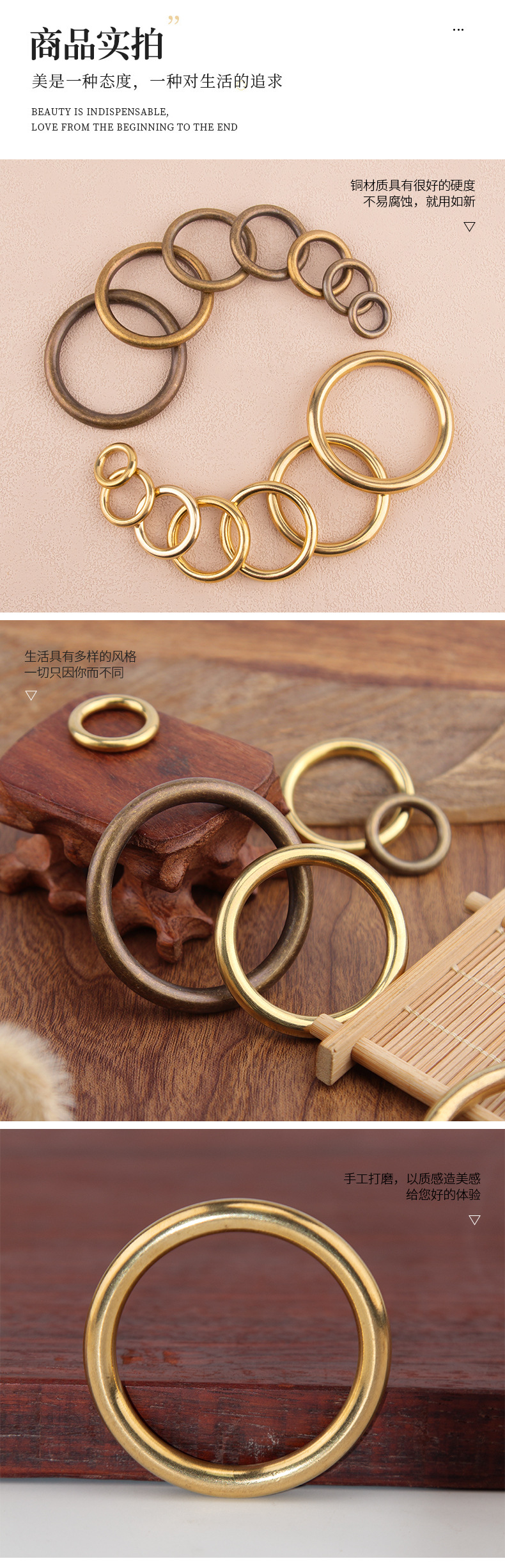 Pure Copper Solid Seamless Copper Ring Key Ring Brass Ring Luggage Leather DIY No Interface Pull Ring Copper Ring