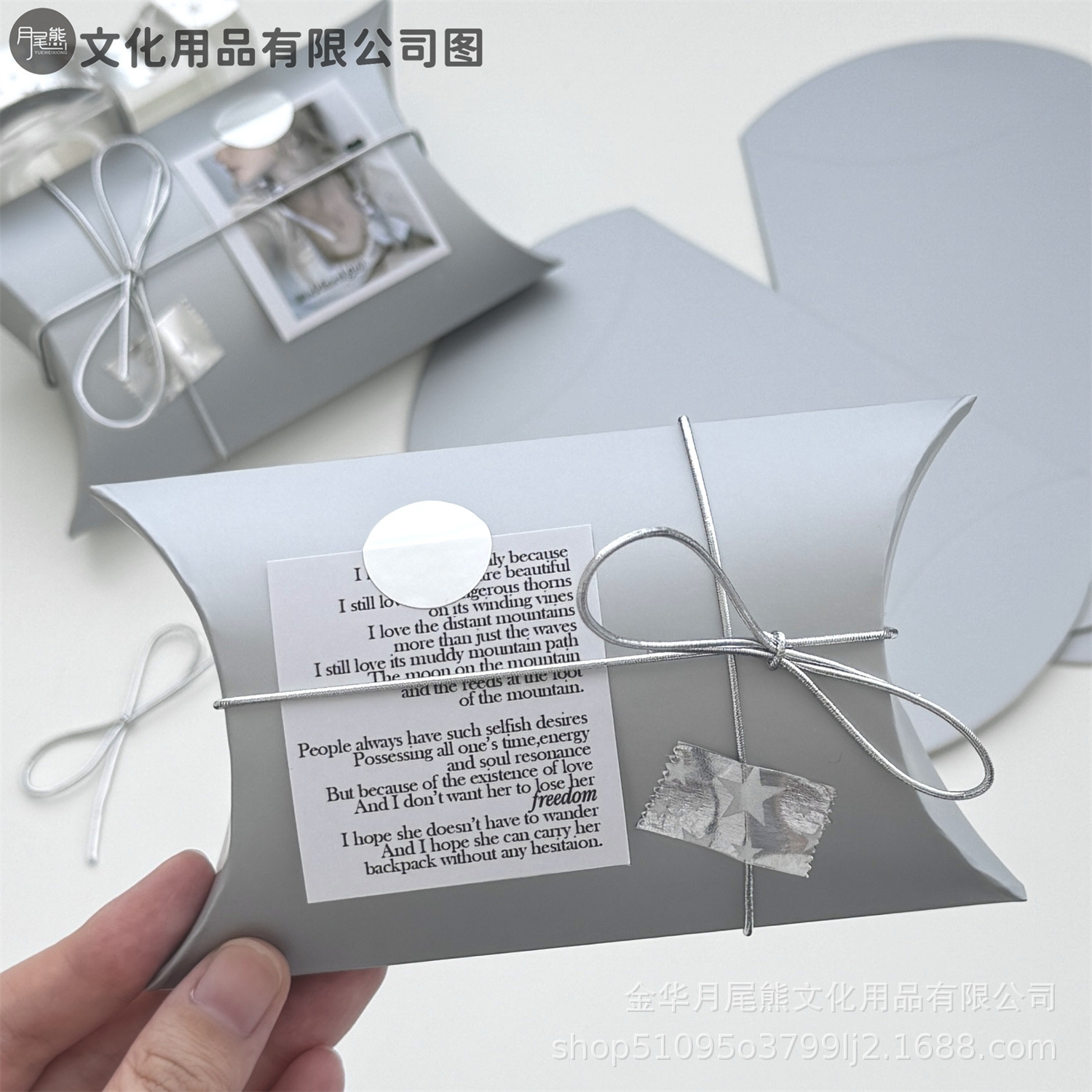 High-value silver pillow box candy box ins wind-out card packaging gift kraft paper box versatile packaging materials