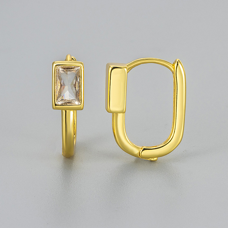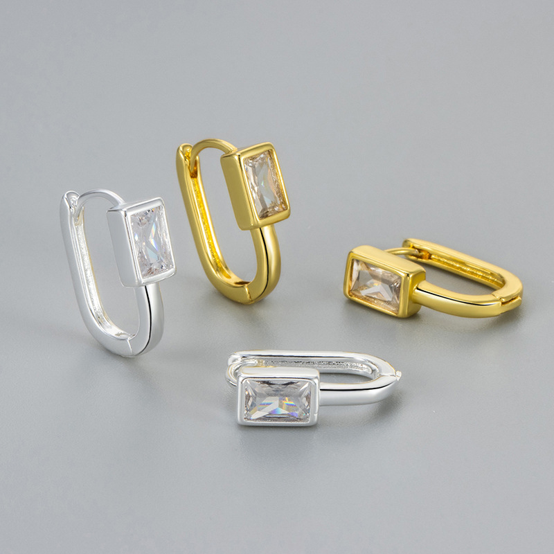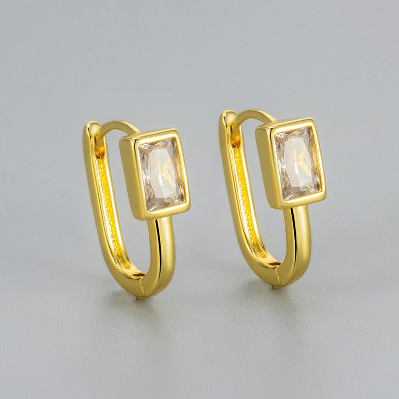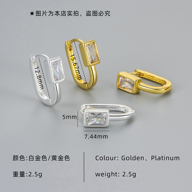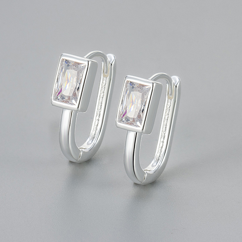 European and American Cross-border Light Luxury Exquisite Geometric Square Zircon Earrings Women's Ear Buckle New Fashionable Simple Cold Retro Light Luxury Matching