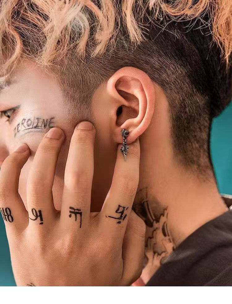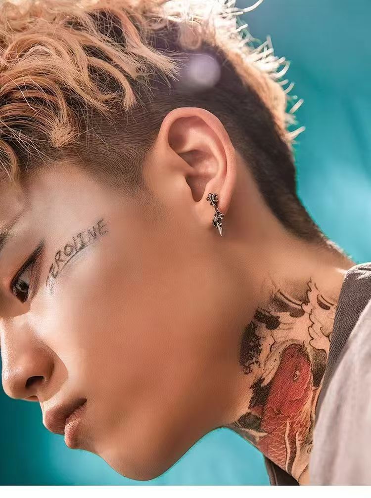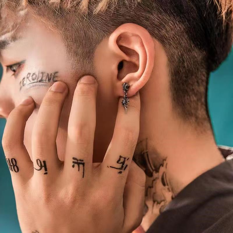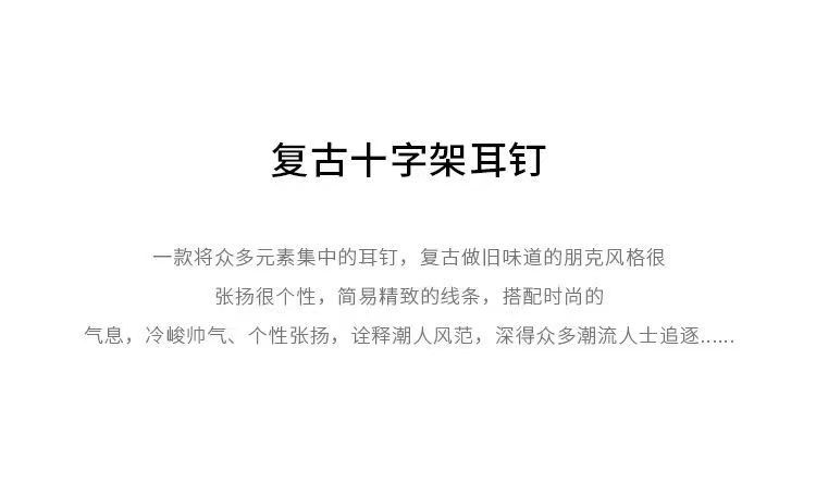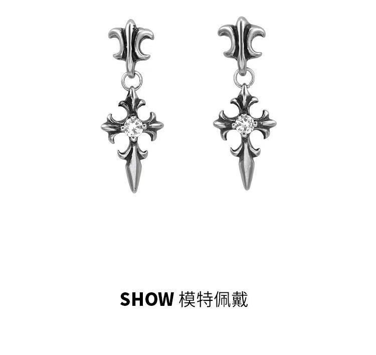 Mingjie Ins Cross Earrings Men's Fashionable South Korea Elegant Personalized Retro Single Earrings Hip-Hop Men's Ears