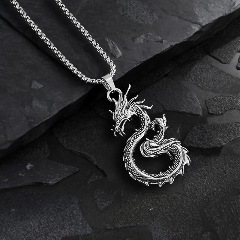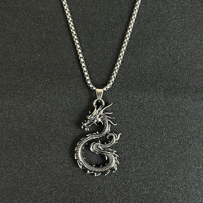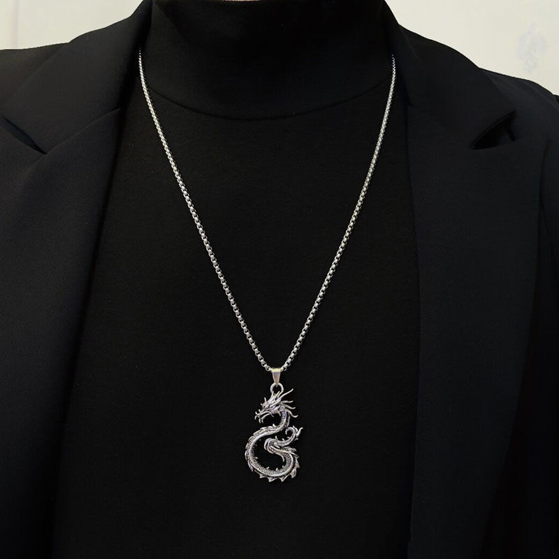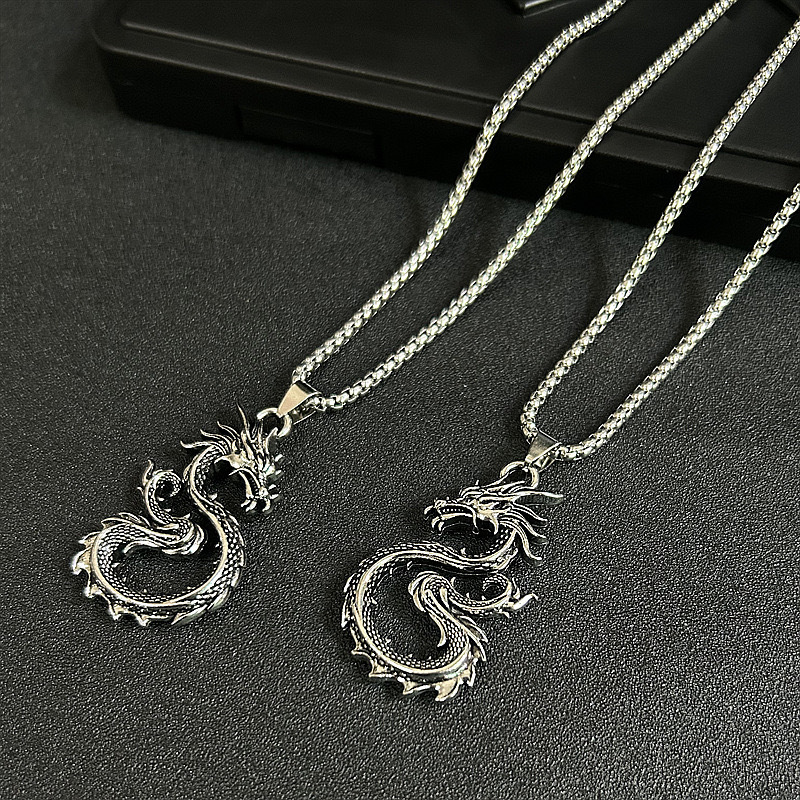 Chinese Style Benmingnian Dragon Pendant Does Not Fade Titanium Steel Necklace Men's Accessories Autumn and Winter Woolen Chain Men's Jewelry