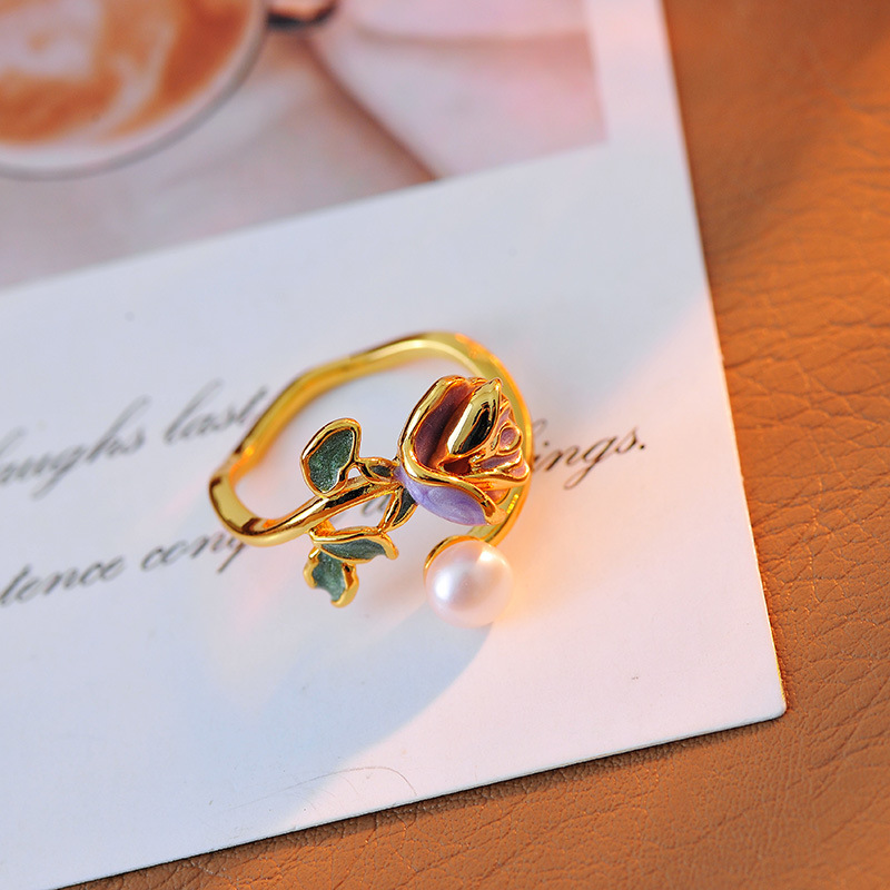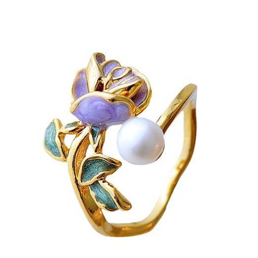 Net red explosions flower opening ring retro enamel oil drops small fragrance in the ancient French ring wholesale a generation of hair