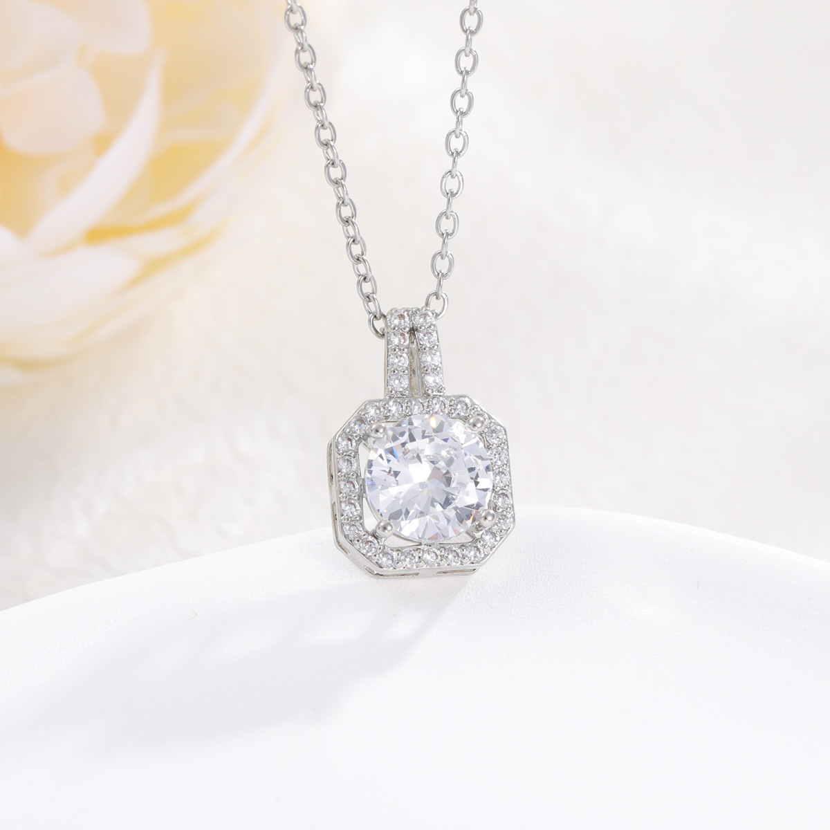 Cross-border Live Zircon Square Perfumer Bottle Pendant Women's High-end Full Diamond Light Luxury Fashion Instagram Style Collarbone Necklace