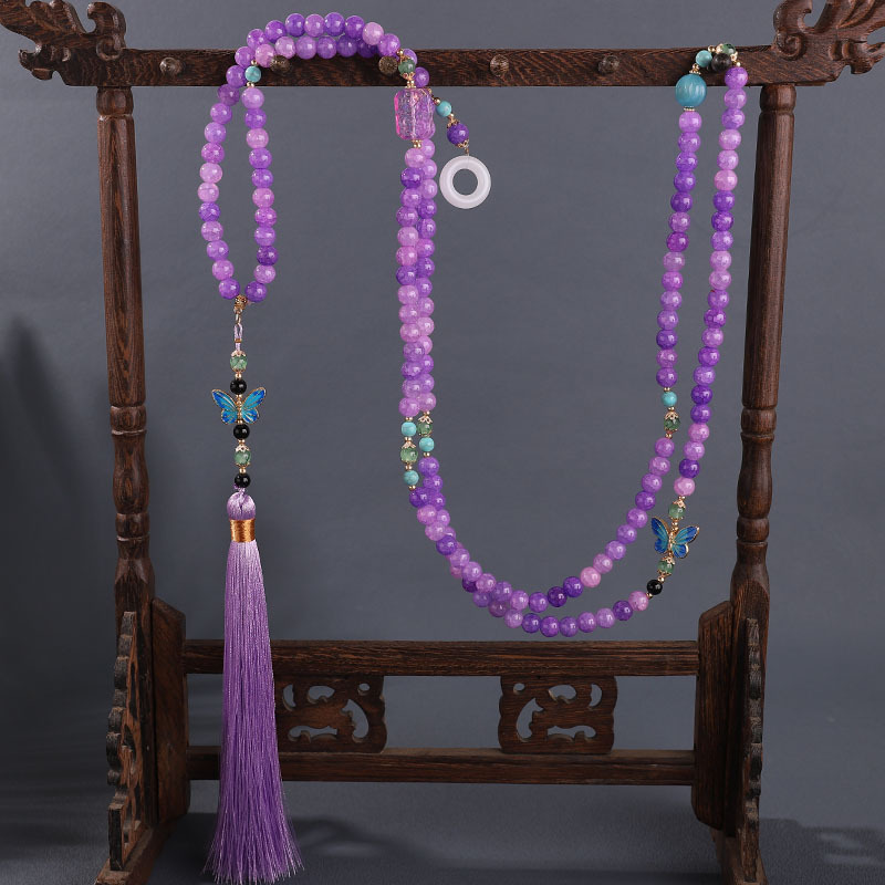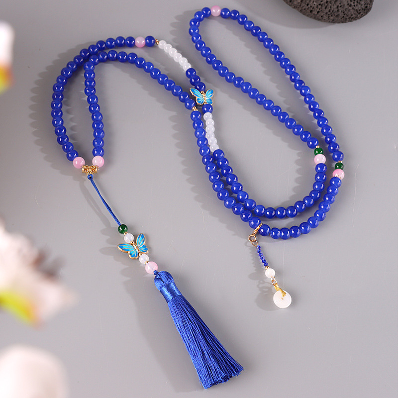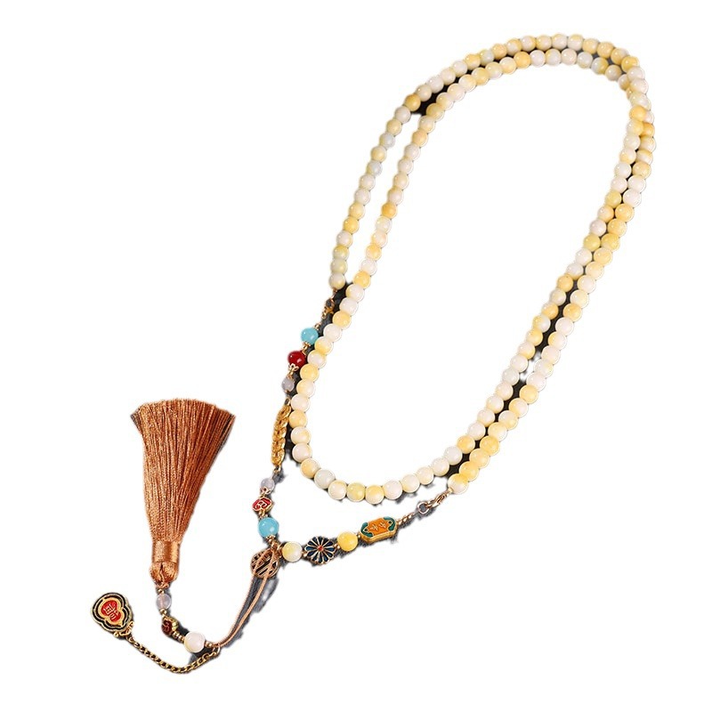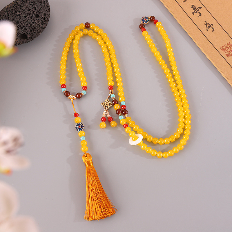 Color: New chinese style lion awakening yellow tassel crossbody chain